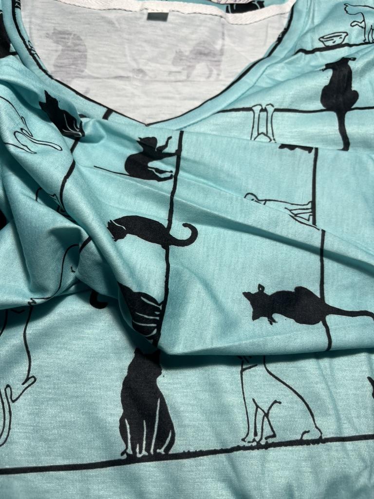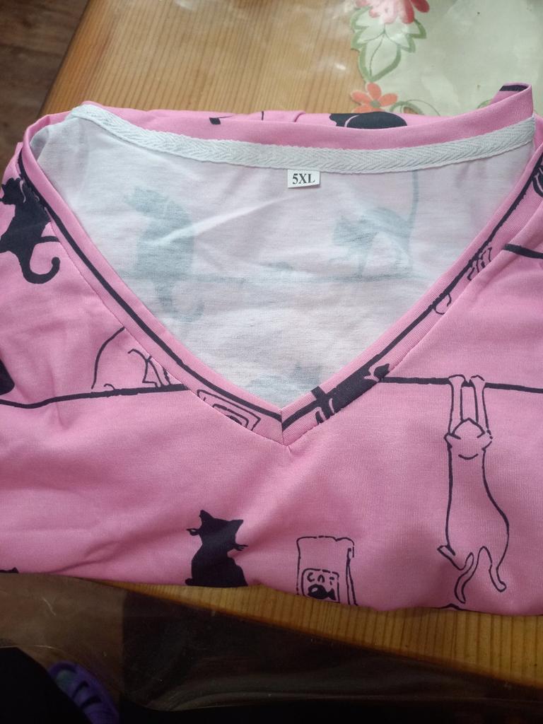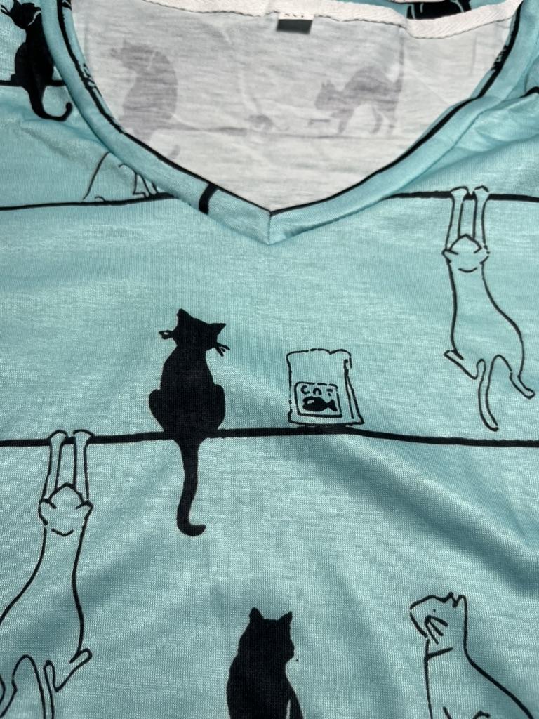 Cute Cat Print Women Tshirts Ladies Tops Long Sleeve V-neck Pullover Femme T-shirts T Shirt For Women