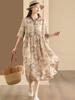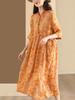 Johnature Women Vintage Dress Print Floral High Quality Stand Half Sleeve Chinese Style Cloths Summer Dress