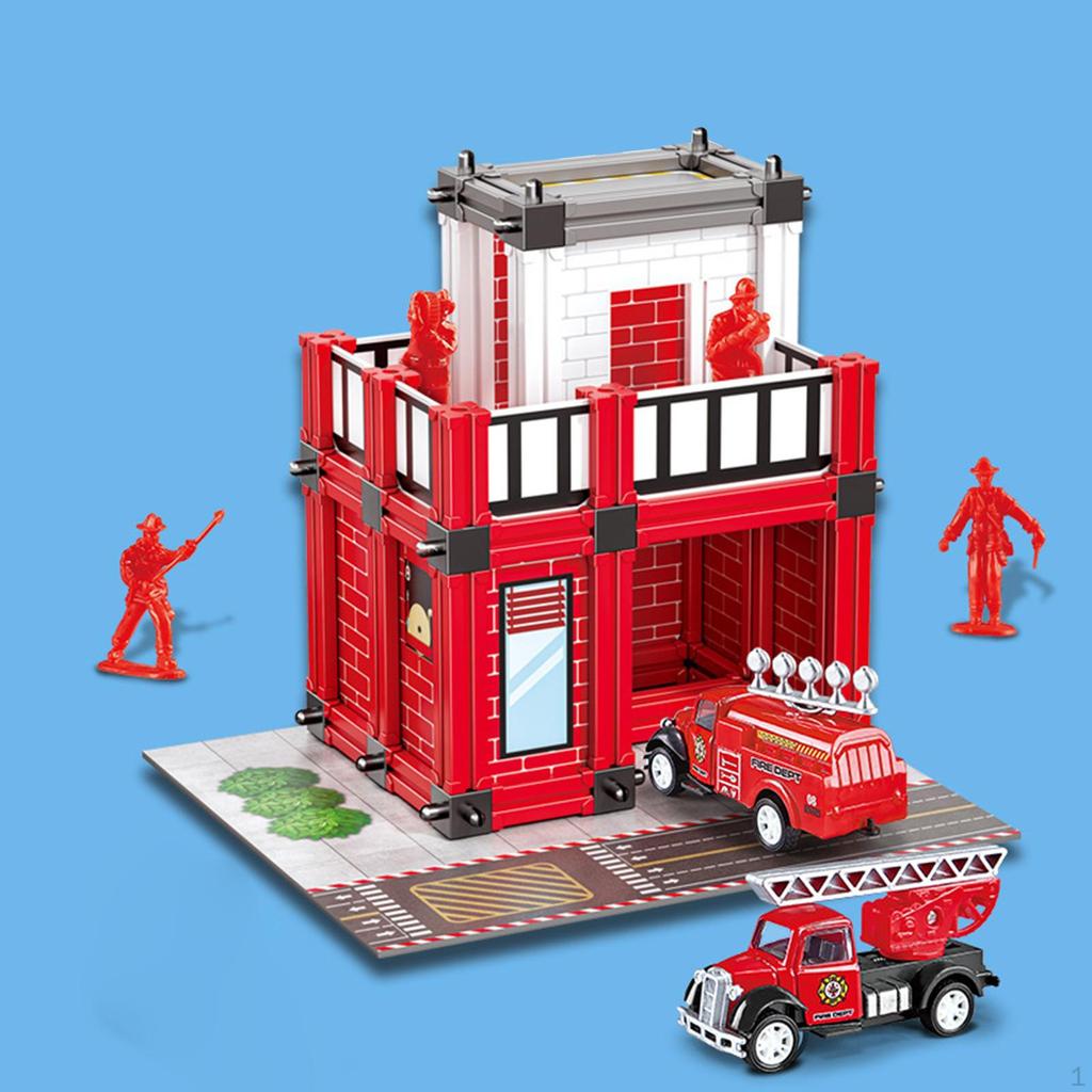 Fire Station Building Kit 3D Puzzle Architecture Model Self Assemble for Layout Accessory