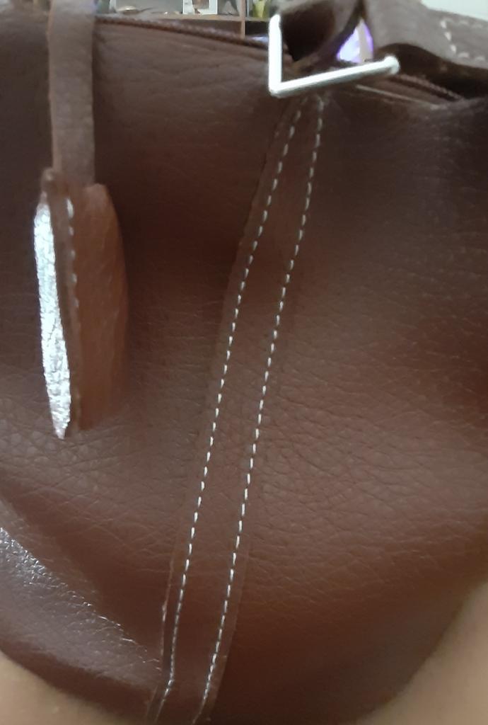 It arrived dark brown and not leather color; apart from that, it's pretty