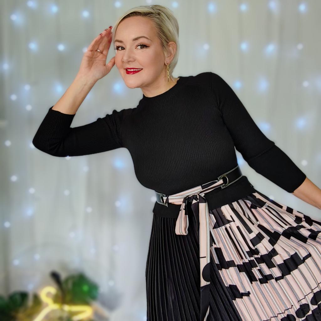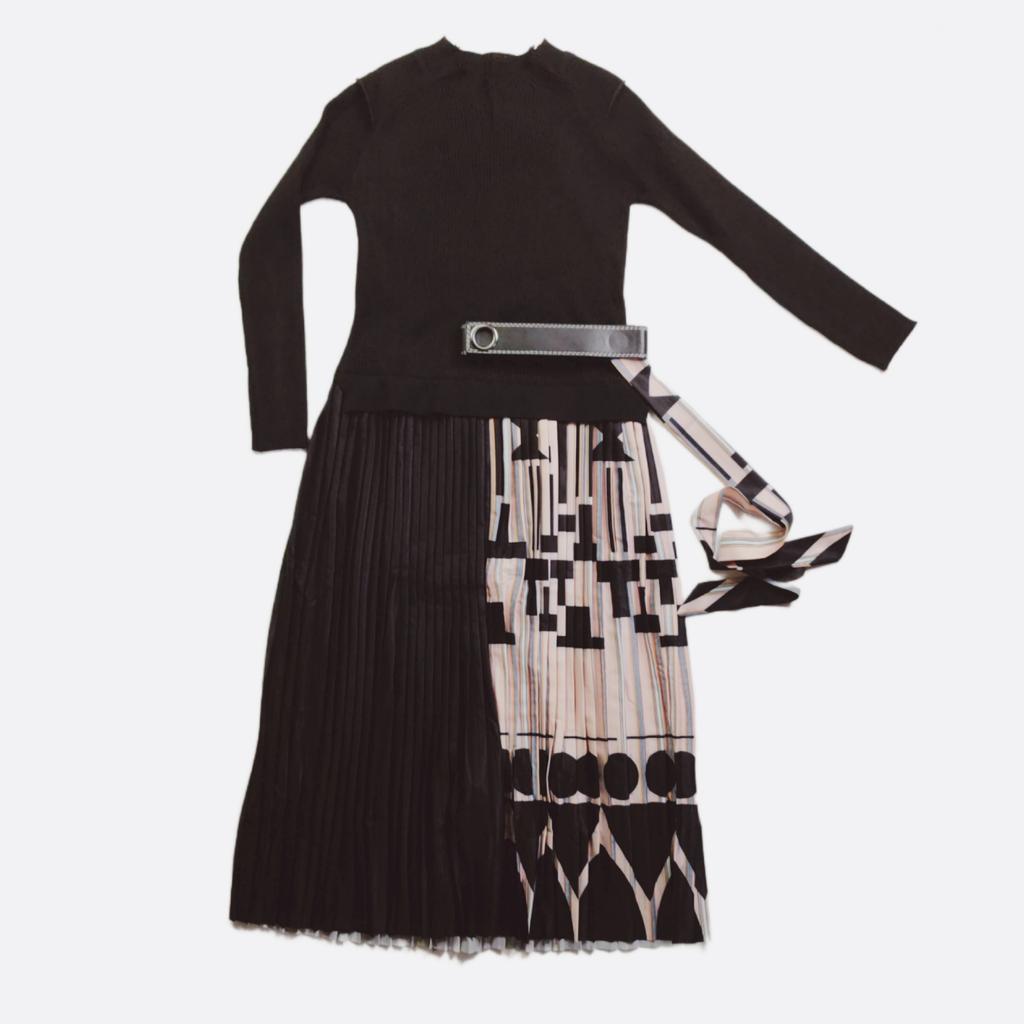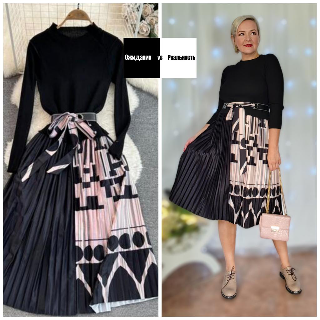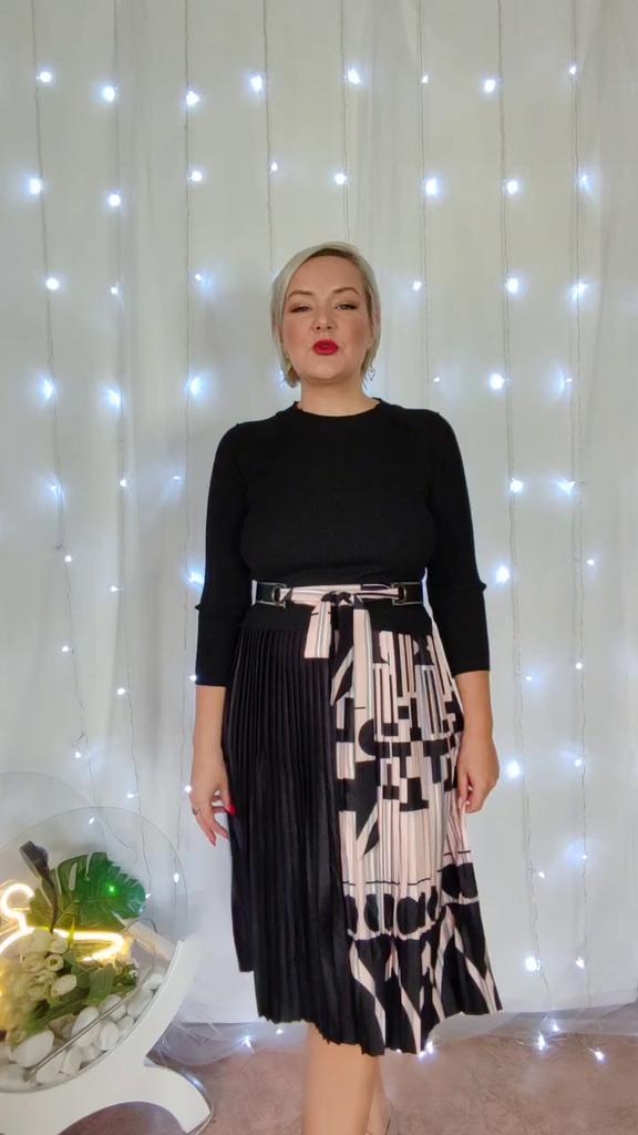Vintage Elegant O Neck Print Pleated Long Sleeve Knit Dress A-line Casual Women Fashion High Waist Summer Spring