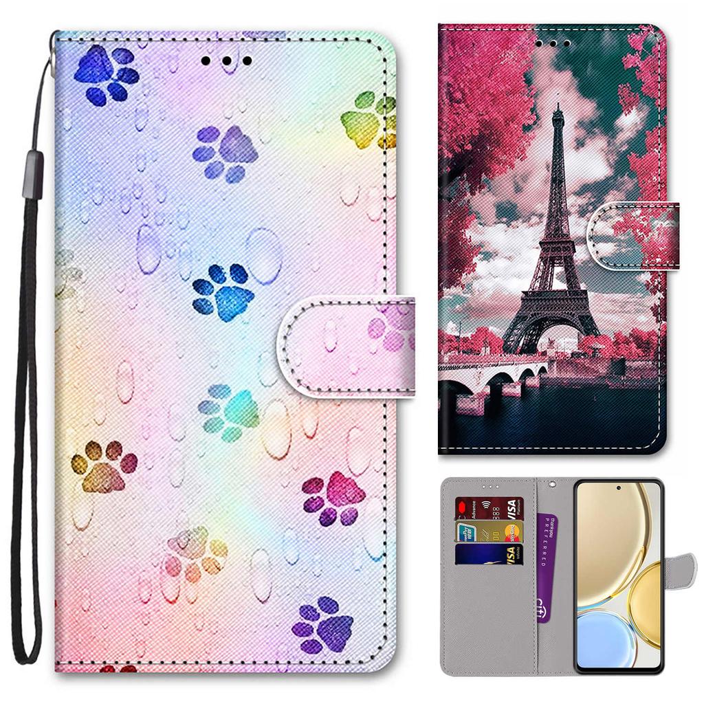 Fashion Painted Pattern Cover Lanyard Flip Leather Case For iPhone Samsung Huawei Honor Xiaomi Redmi OPPO Realme Moto Asus
