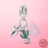 New 925 Silver Snake Coffee Cup Dog CZ Cactus Charms Beads Fit Original Women Bracelet Fine Silver Jewelry Gift