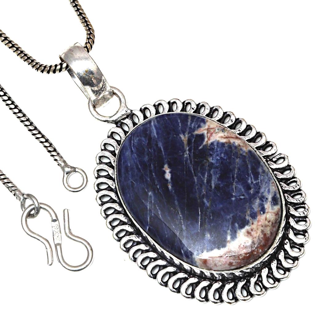 Pendant Sodalite Blue Color Gemstone Valentine'Day Gift Silver Jewelry 2.25"