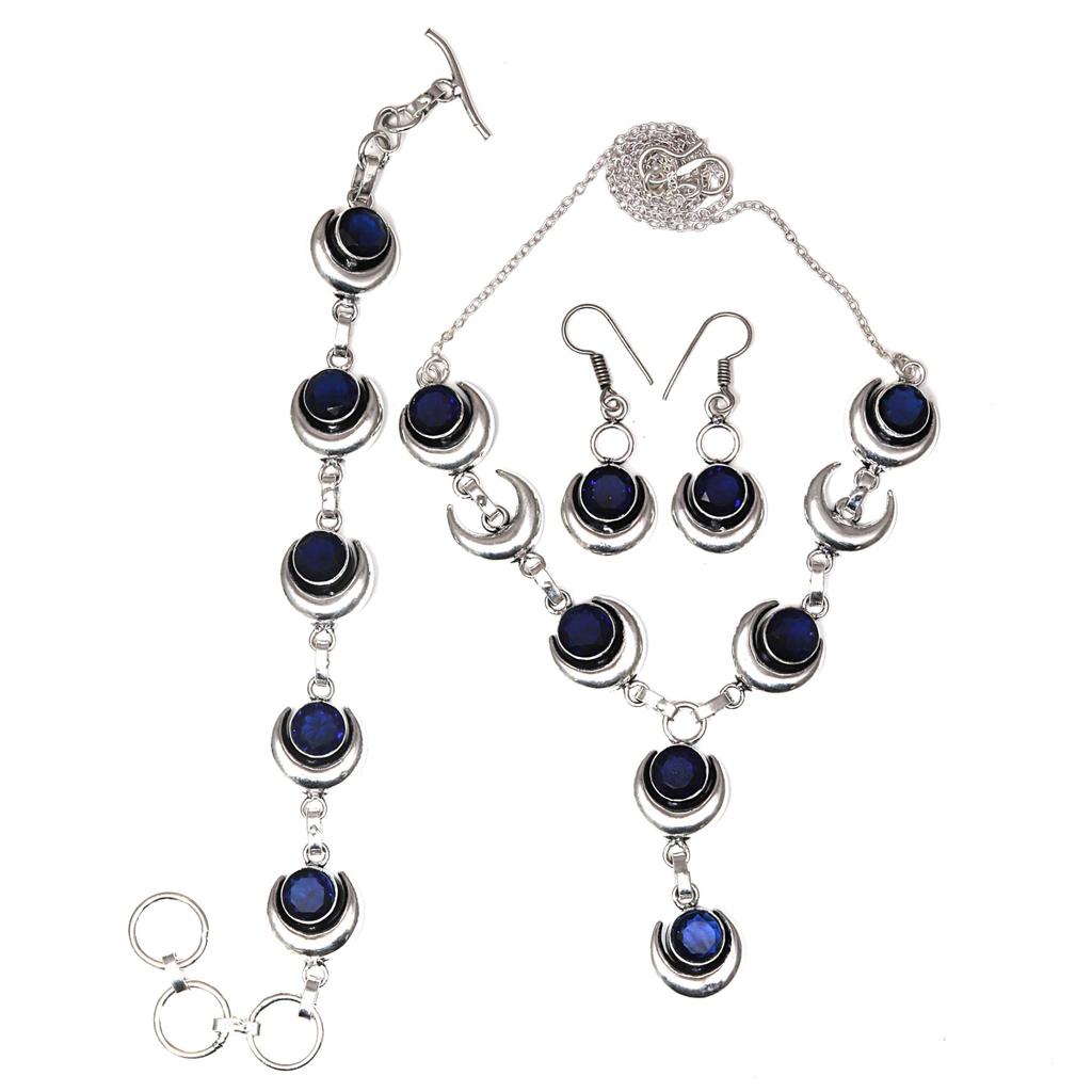 Tanzanite Quartz Gemstone Women's Unisex Jewelry Necklace Set 18-20''