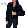 Women's Jacket: Elevate your style with this chic and versatile women's jacket. Crafted from soft and comfortable polyester fiber, this short jacket is perfect for all seasons - spring, autumn, and winter. The solid color design exudes simplicity, while the lapel collar adds a touch of sophistication.