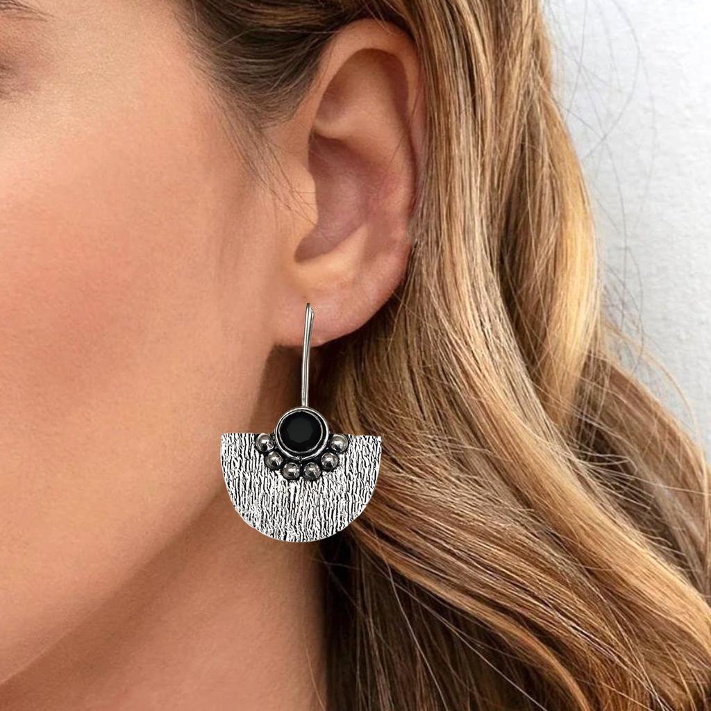 Black Onyx Gemstone Women's Gift For Her Silver Jewelry Earring 1.5''