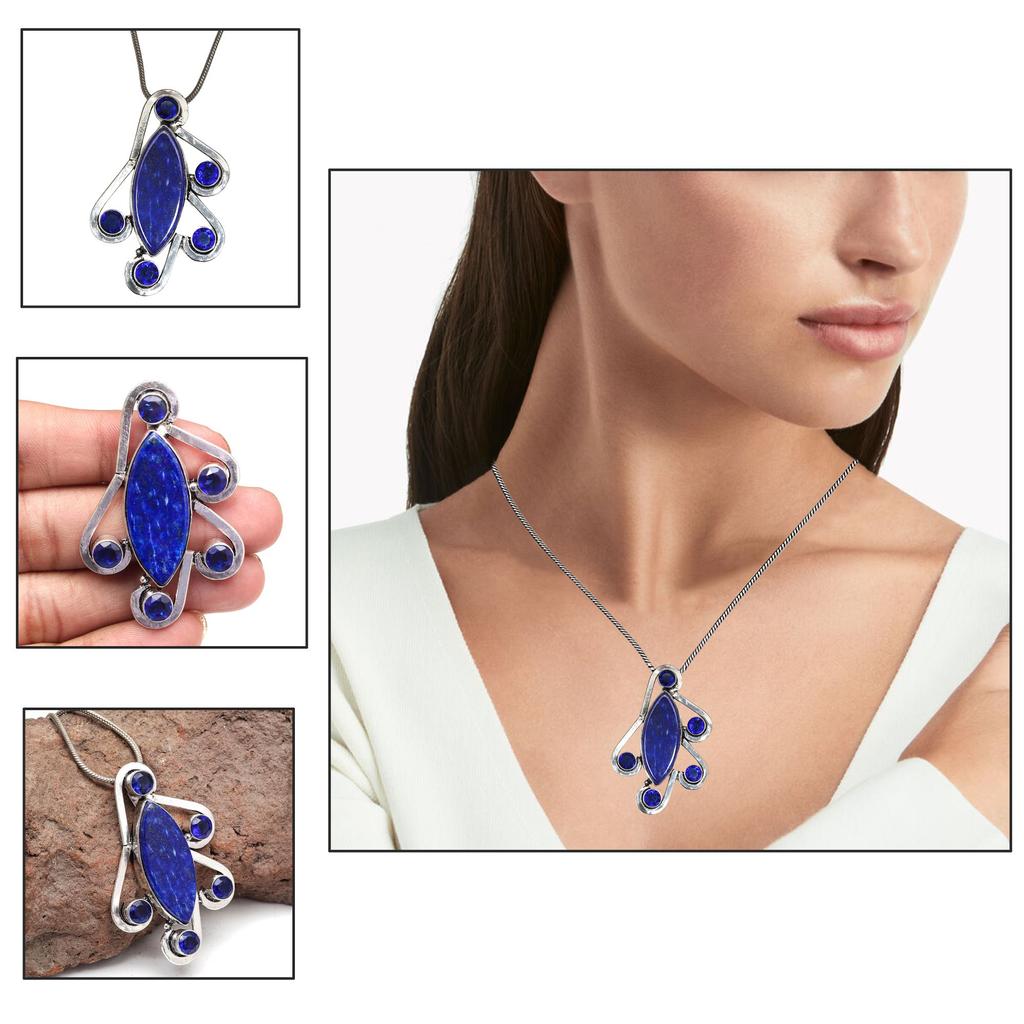 Lapis Silver Necklace Lazuli Gifted Gemstone Pendant Jewelry 18" Handmade