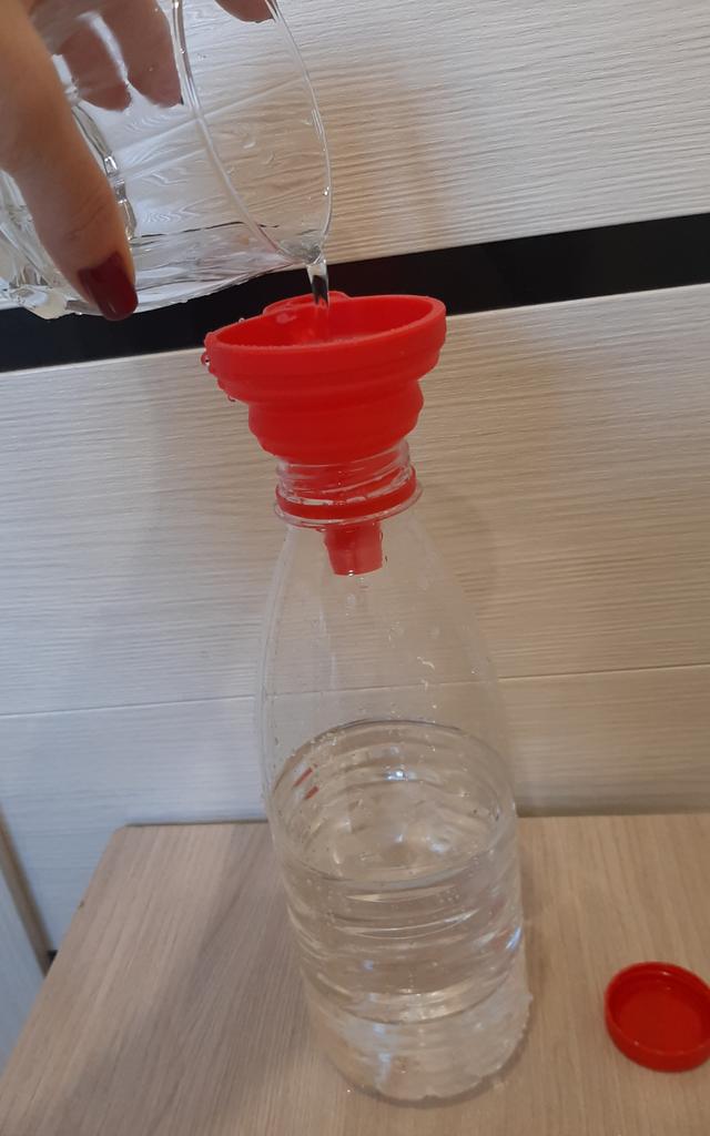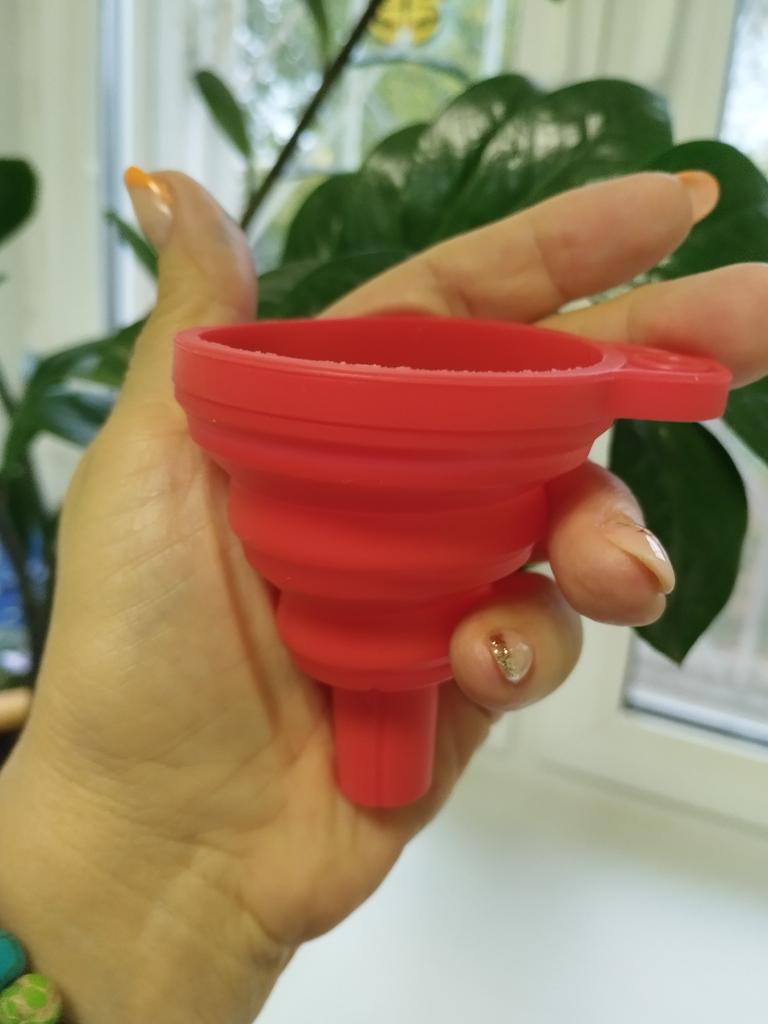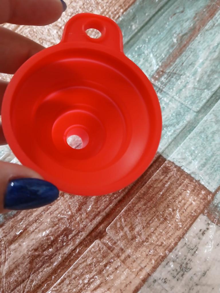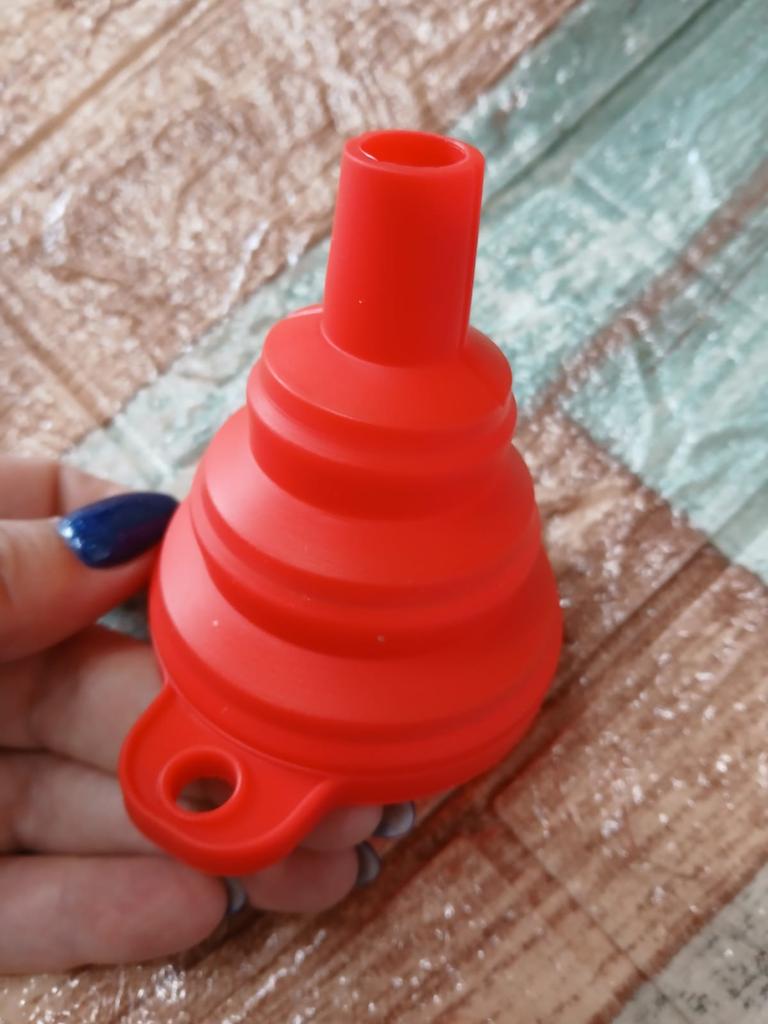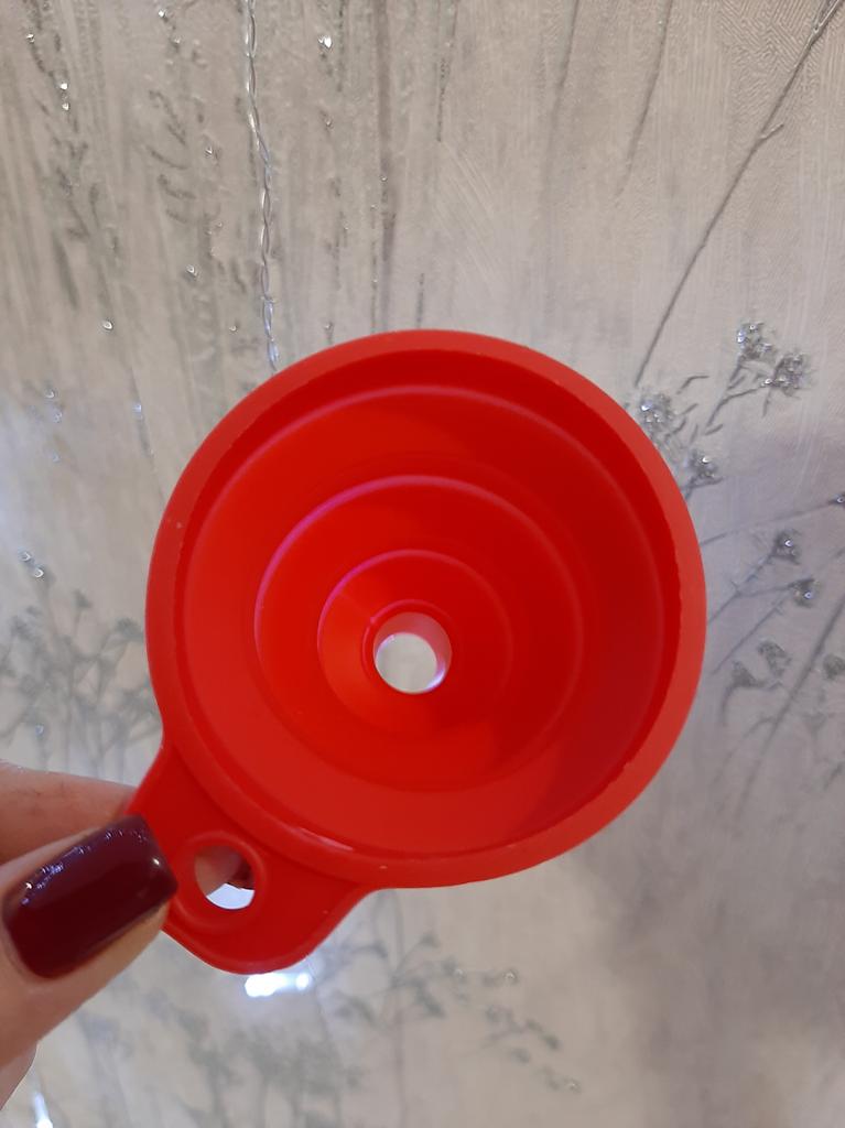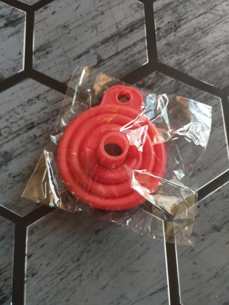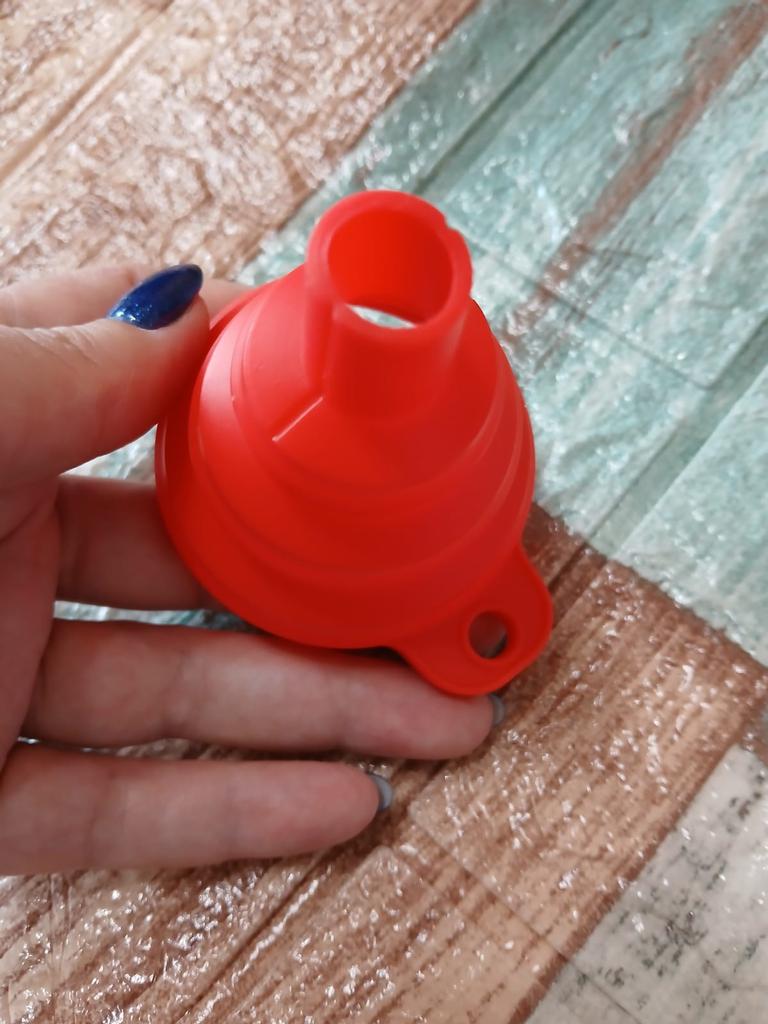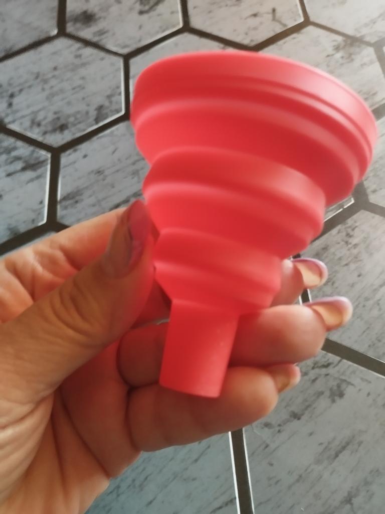It is a small, foldable funnel, which is very handy. It will help you pour any liquid into a container. I recommend it 100% for its quality and price. 👌😘👌. 📦Package Content: A small collapsible silicone funnel. 👍Pros: Sent to Spain in 24 days ✈️ Well protected for the journey. Its quality is good enough for the product it is. You can pour any liquid without spilling it.. It is recommended for the kitchen or for pouring any liquid under the hood of your car.. Can be used with liquids that are hot or cold. Very comfortable and easy to fold for storage.. It is cleaned by simply putting it under the tap. Does its job perfectly. The seller has two colors to choose from in red or black. 👎Contras: nothing to note. .