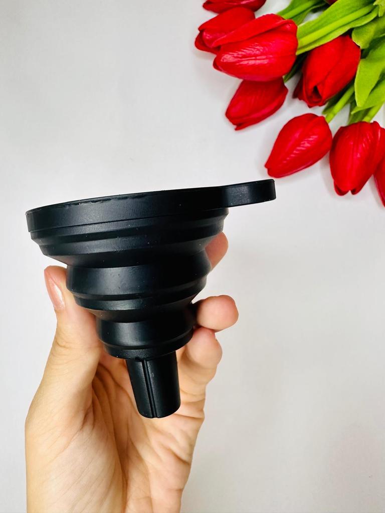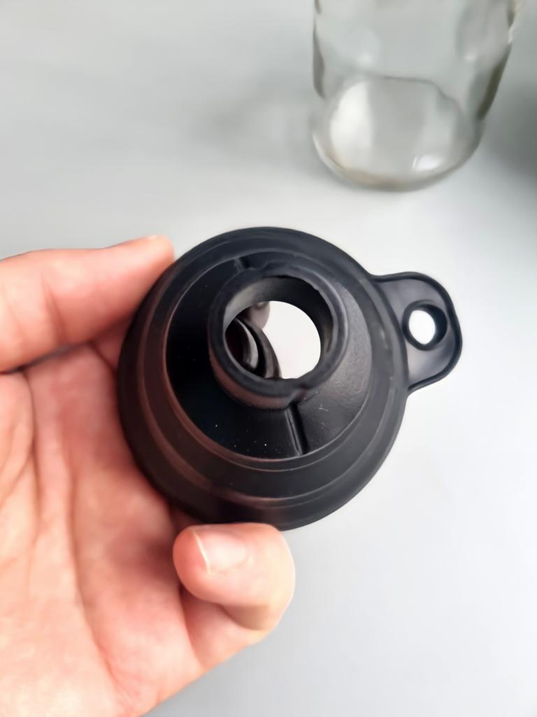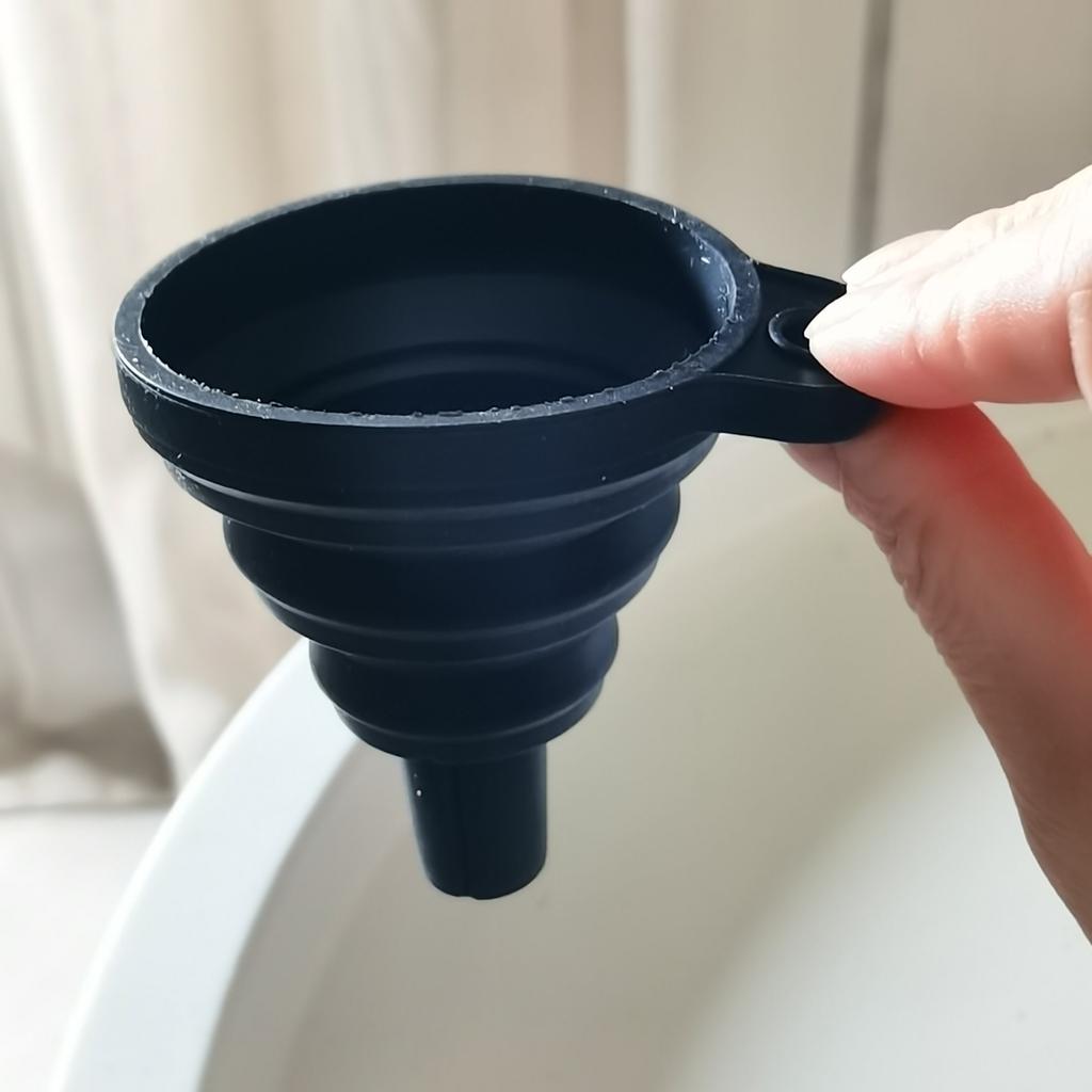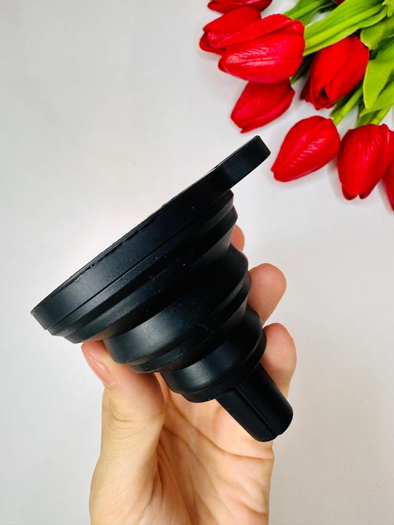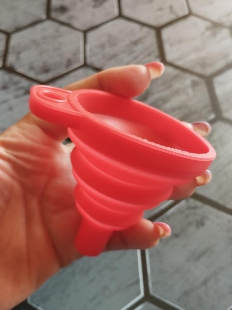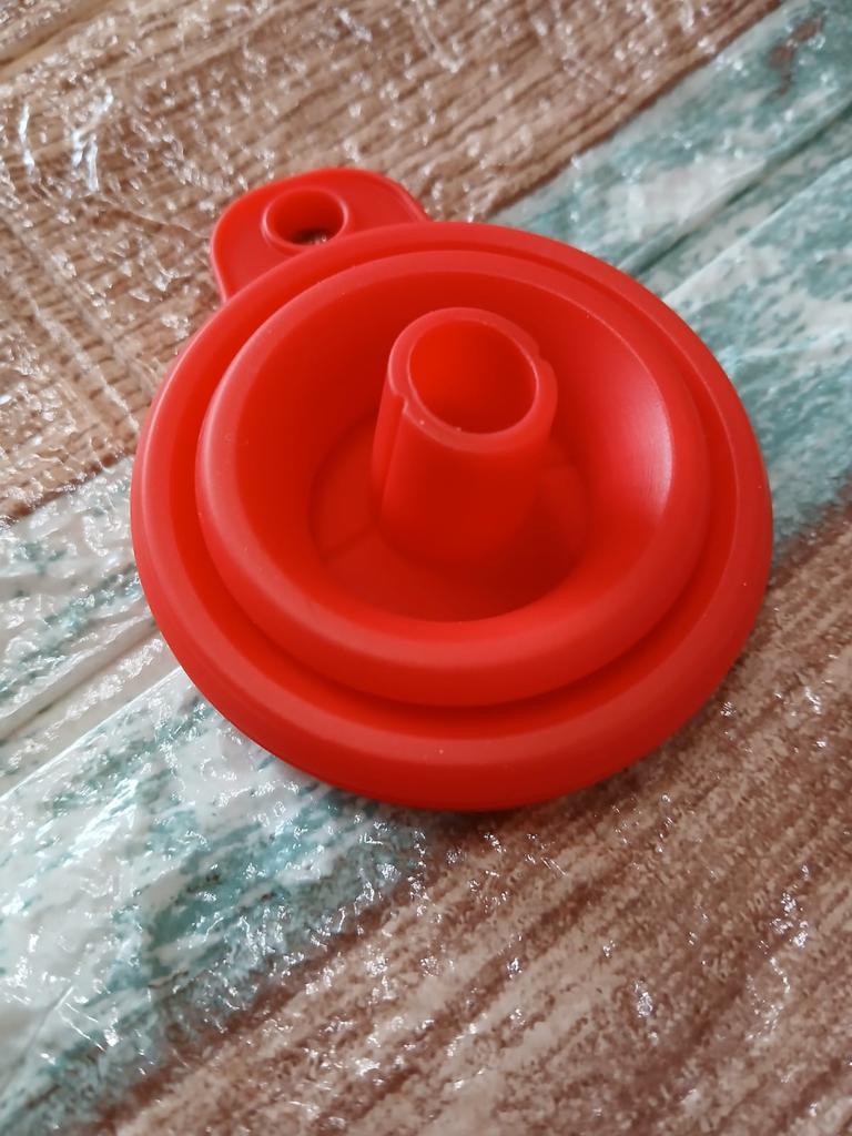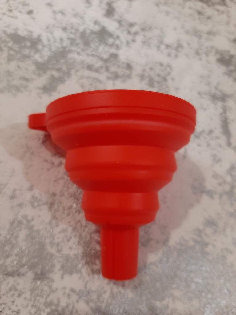 Foldable funnel High quality silicone Approx. 5 cm wide and 6 cm long Suitable for all liquids Should not be missing in any kitchen, workshop or car Highly recommended 👍