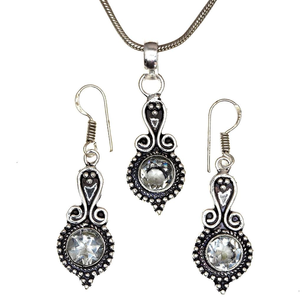Topaz Set White Pendant Earrings Jewelry Necklace Gemstone Blue