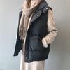 Autumn Winter Women Solid Loose Vest Drawstring Stand Collar Long Vest Jacket Cotton Padded Women Windproof Warm Waistcoat