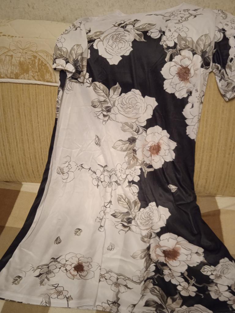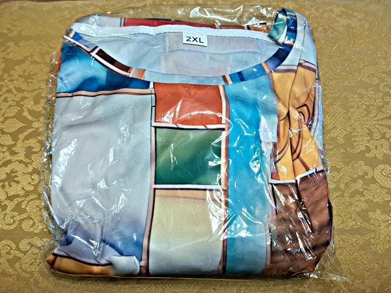 The parcel arrived in a month. It is see-through, size 5XL is slightly small for size 64. It's a pity that I didn't pay attention to the quality of the material, I thought it was cotton, well, coolness will also work. It doesn't look like an 'going out' outfit, but it can be recommended. 5 stars to everyone.