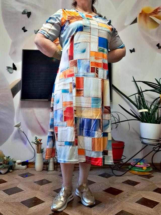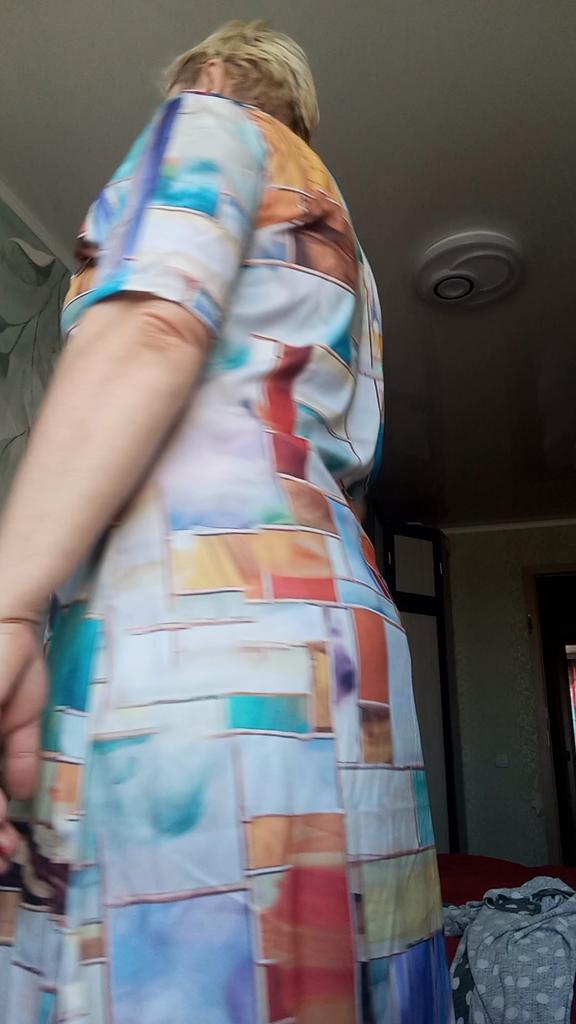 The dress fits well on the shoulders and the length is good to the middle of the leg, but it is very wide. I think I will change it myself for the summer. Otherwise it looks not bad. Thank you