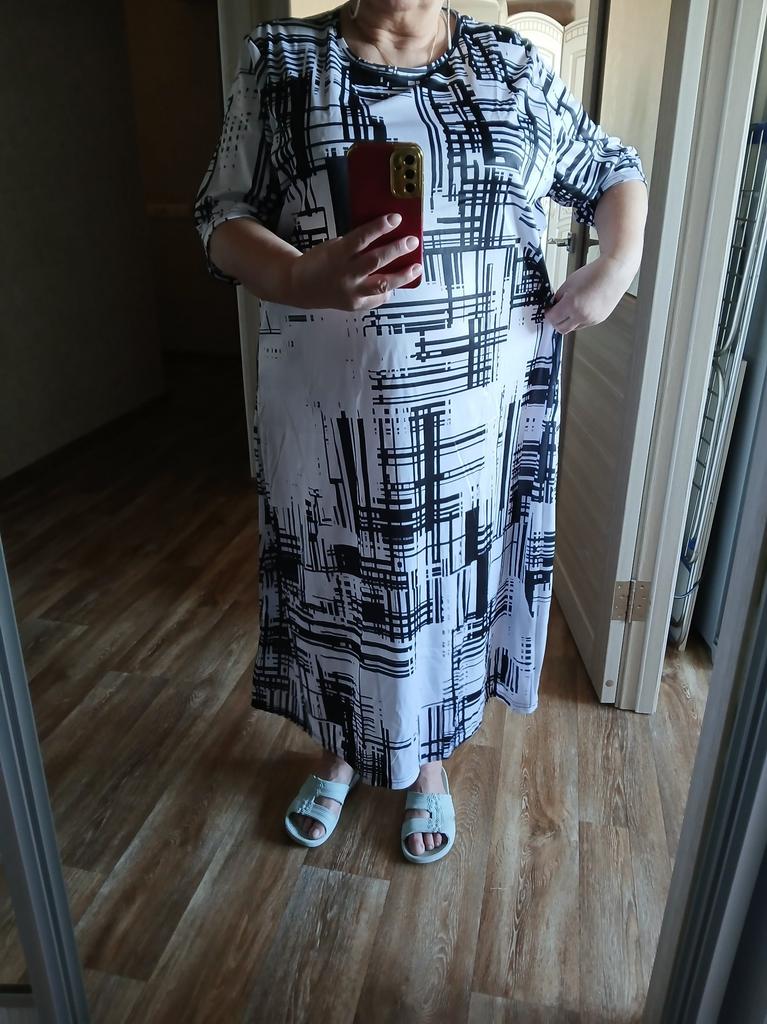 It's too big for me, I ordered size 3XL. My mom's size is 60. Mom is in the photo. The dress doesn't match what was shown.
