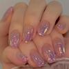 24pcs Glossy Short Square Fake Nails, Aurora Purple Press On Nails With Glitter Sequin Star Design, Sparkling Full Cover False Nails For Women Girls