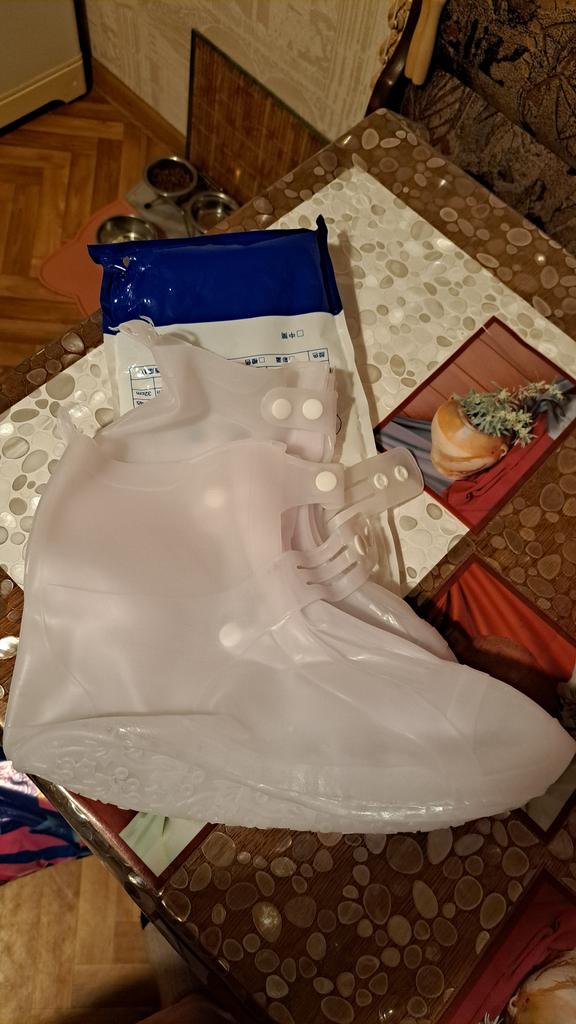 1set Two Tone Shoe Covers Waterproof Overshoes Washable Anti Skid Shoe Covers with Button White Durable Shoe Covers