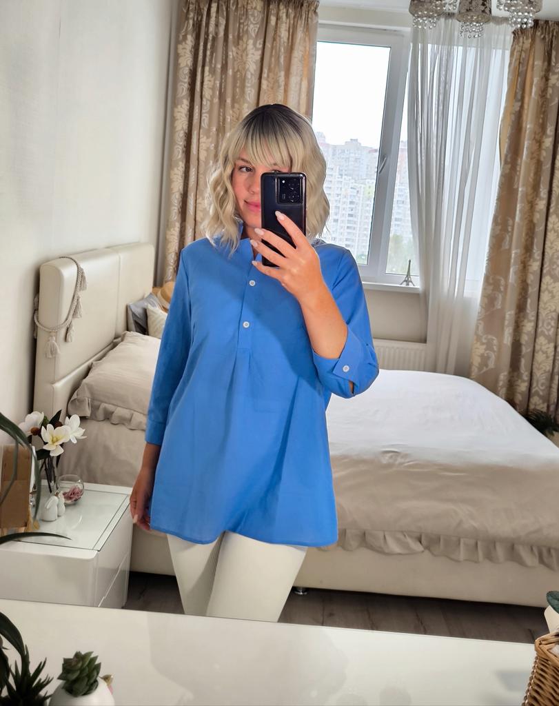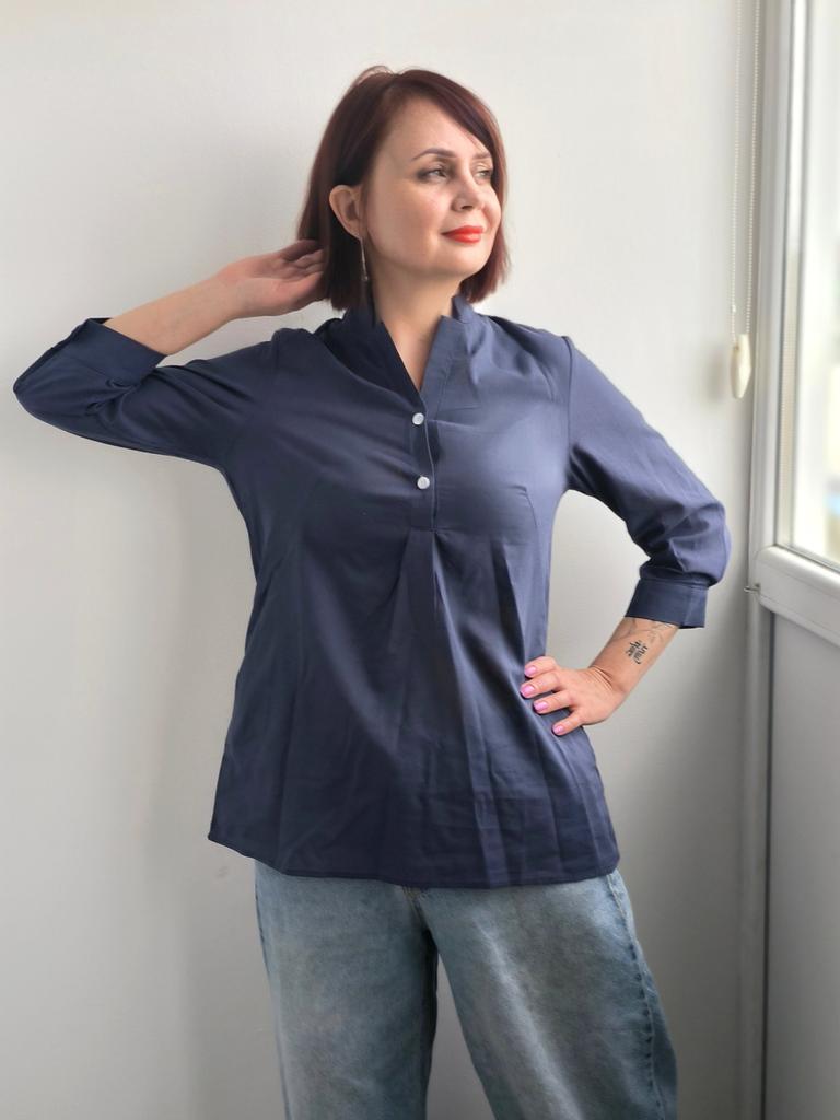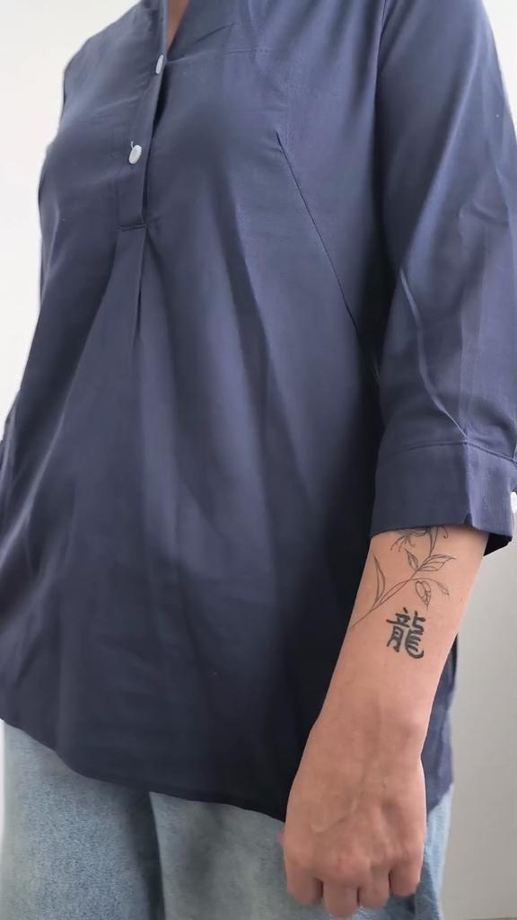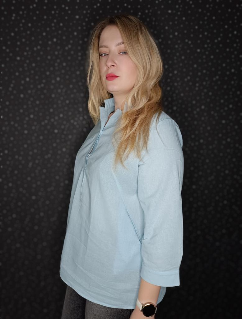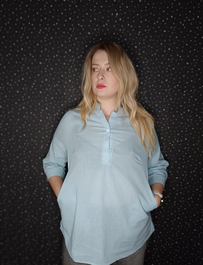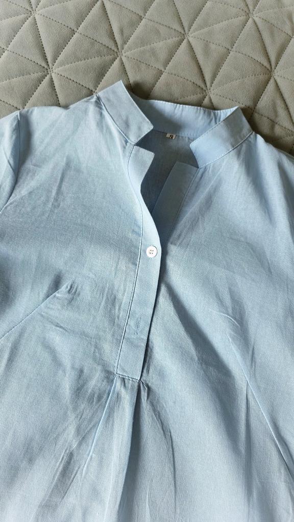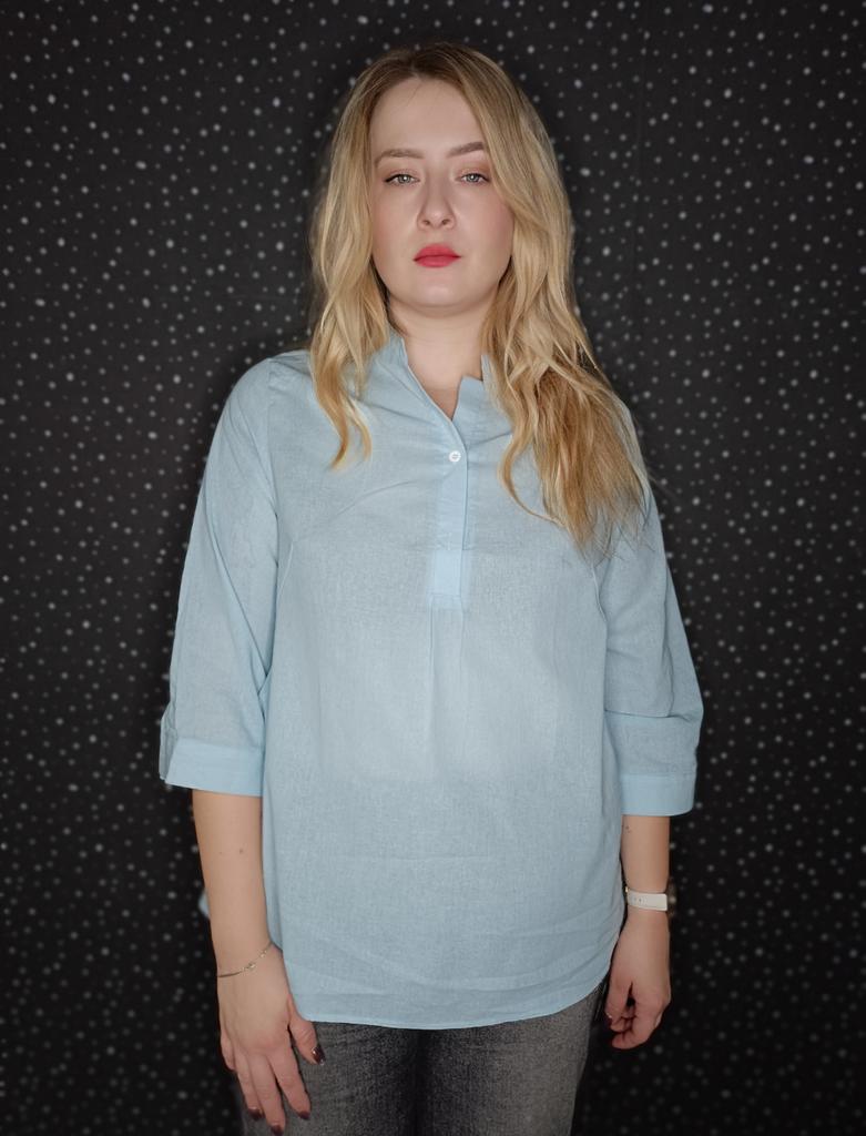 This shirt is simply wonderful! Just what you need for spring and autumn – lightweight, breathable, and with a loose fit that feels comfortable on the body. The stand-up collar adds a slightly more special and put-together look, as if you made an effort when in reality it's just an easy-to-wear pullover.. The polyester fabric is soft and flowy, doesn't wrinkle too much, and dries quickly after washing. I love that the color is uniform – it leaves room to combine with jewelry, a scarf, or even just jeans and go out.. The loose fit flatters larger sizes, doesn't cling to the body, and doesn't emphasize areas you don't want to. The sleeve length is also perfect – not too short and not too long.. In short, a practical, comfortable, and flattering shirt that is suitable for both everyday wear and casual outings. Really happy with it!