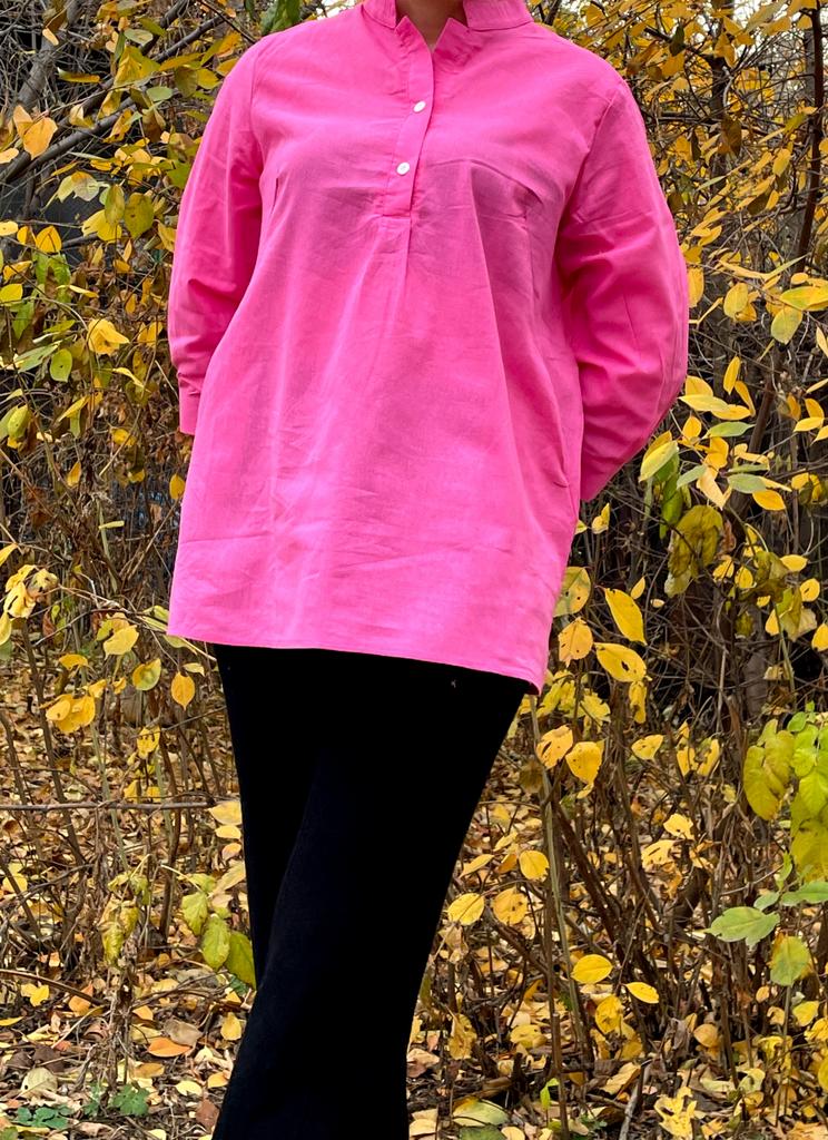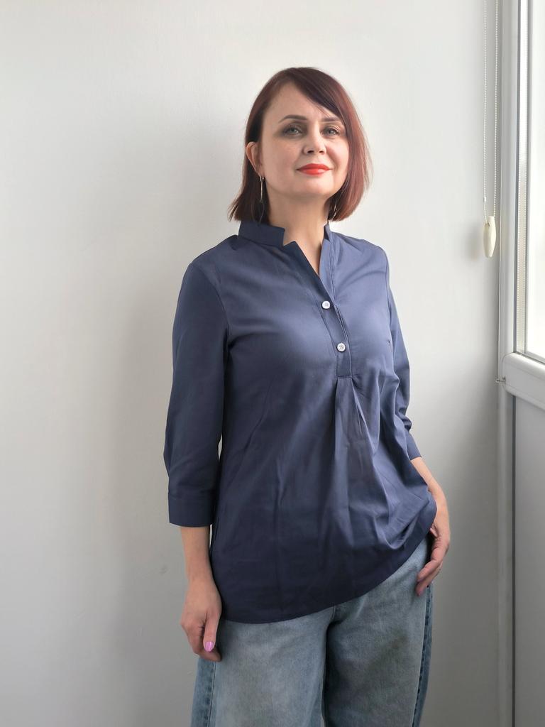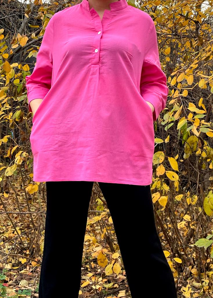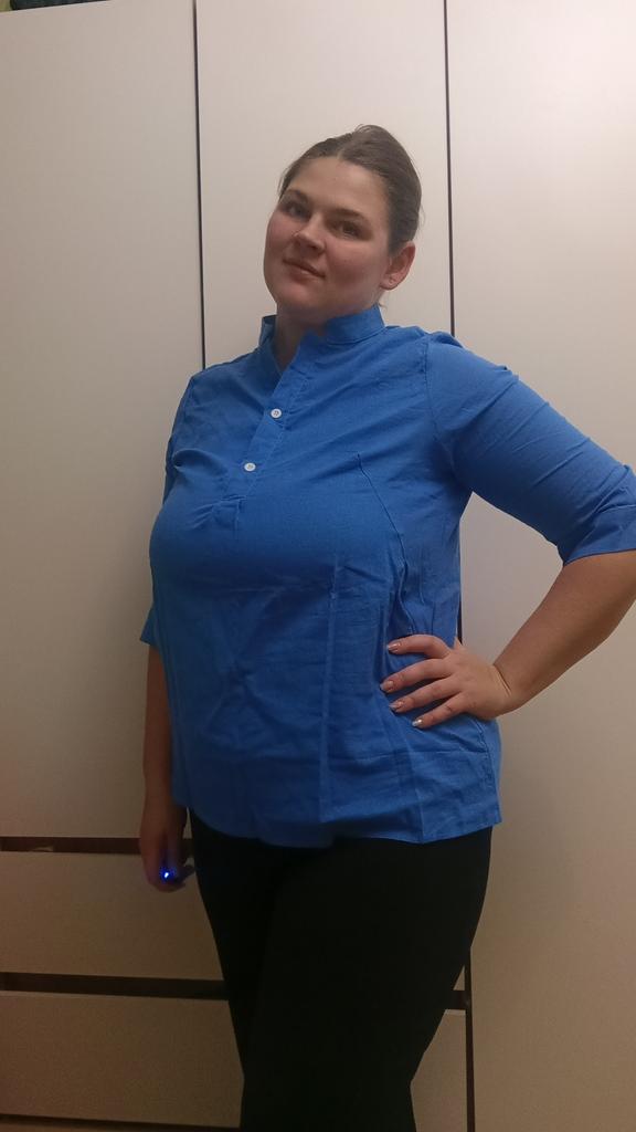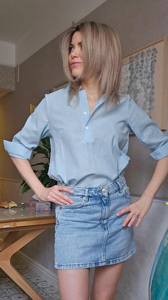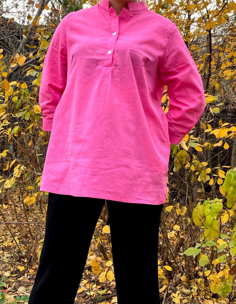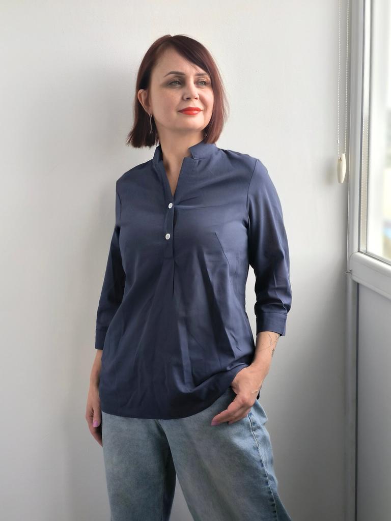 This shirt is simply wonderful! Just what you need for spring and autumn – lightweight, breathable, and with a loose fit that feels comfortable on the body. The stand-up collar adds a slightly more special and put-together look, as if you made an effort when in reality it's just an easy-to-wear pullover.. The polyester fabric is soft and flowy, doesn't wrinkle too much, and dries quickly after washing. I love that the color is uniform – it leaves room to combine with jewelry, a scarf, or even just jeans and go out.. The loose fit flatters larger sizes, doesn't cling to the body, and doesn't emphasize areas you don't want to. The sleeve length is also perfect – not too short and not too long.. In short, a practical, comfortable, and flattering shirt that is suitable for both everyday wear and casual outings. Really happy with it!