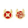 Fu Character Dragon Stud Earrings with Diamonds, Simple Design, National Style, Light Luxury, High-end Ear Jewelry, Fashion Commuting