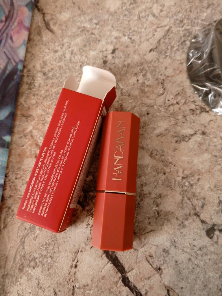 Velvet lipstick 💄 of the Handaiyan brand Shade 01 (Honey peach 🍑) At the beginning of this month, I already talked about this lipstick and specifically about the shade Honey peach 🍑. The lipstick is very cool, comfortable on the lips, does not dry, does not spread. This fall 🍁 this lipstick has become one of my favorites.❤️ Not only I liked the lipstick, but also my close friend, so I decided to make her happy with a small gift. Yes, this lipstick is for her 🎁☺️ The lipstick has a nice case and box design and a light unobtrusive aroma 🌸. Both me and my girlfriends like the lipstick 😍 If the information was useful, put it as a favorite ❤️ I received the goods very quickly in 19 days in a combined package 🚚. I ordered several products at the same time in the Beauty Every Day store, the seller put everything in one package, which is very convenient 📦 The track was tracked completely. The arrival at the point of issue was announced by sms 📲. Packaging: bubble bag. The box contains all the necessary information. Expiry dates are indicated. Happy shopping and fast deliveries to everyone 🛍️☺️🚀🌸 And remember that every woman is a star, so shine brighter 🌞 ❤️. PS: Need promo codes? Then be sure to visit my Telegram channel Olena.joom.thebest (t.me/olenajoom), where I regularly publish promo codes to make your purchases even more profitable 😘🛍️.