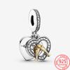 Authentic 925 Sterling Silver Dome Gold Heart Pendant Charm Fit Original Fashion 3mm Bracelet Diy Beaded Jewelry Gift Making