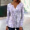 Women's Spring Autumn Pleated Button Down Collar Floral Print Long Sleeve Top