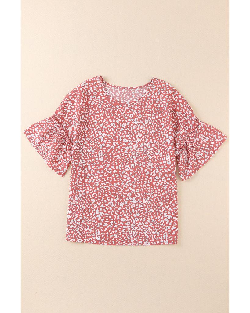 Azura Exchange Leopard Ruffle Sleeve T-Shirt