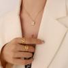 Titanium Steel Gold-Plated Accessories Square Little Bee White Sea Shell Inlaid Necklace Earrings Jewelry Set