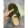 Bokken Shoes Women's Green Leather Cow Suede Round Toe Retro Flat Soft Sole One Foot Stirrup Baotou Half Mop