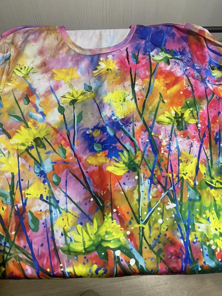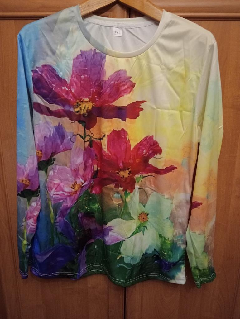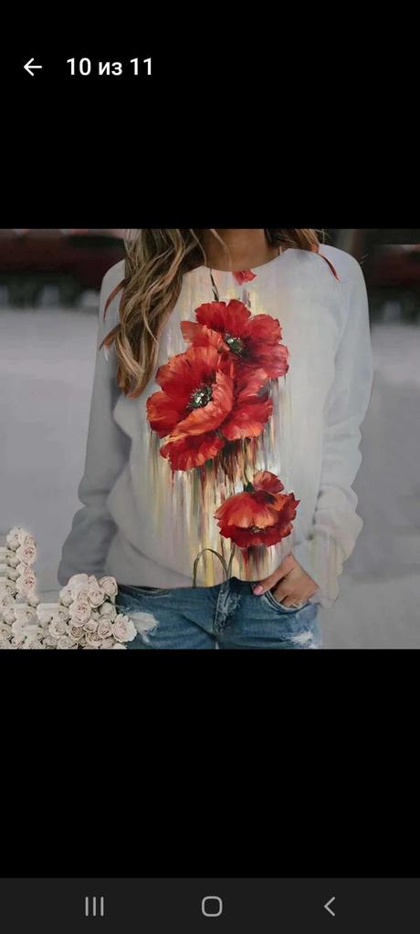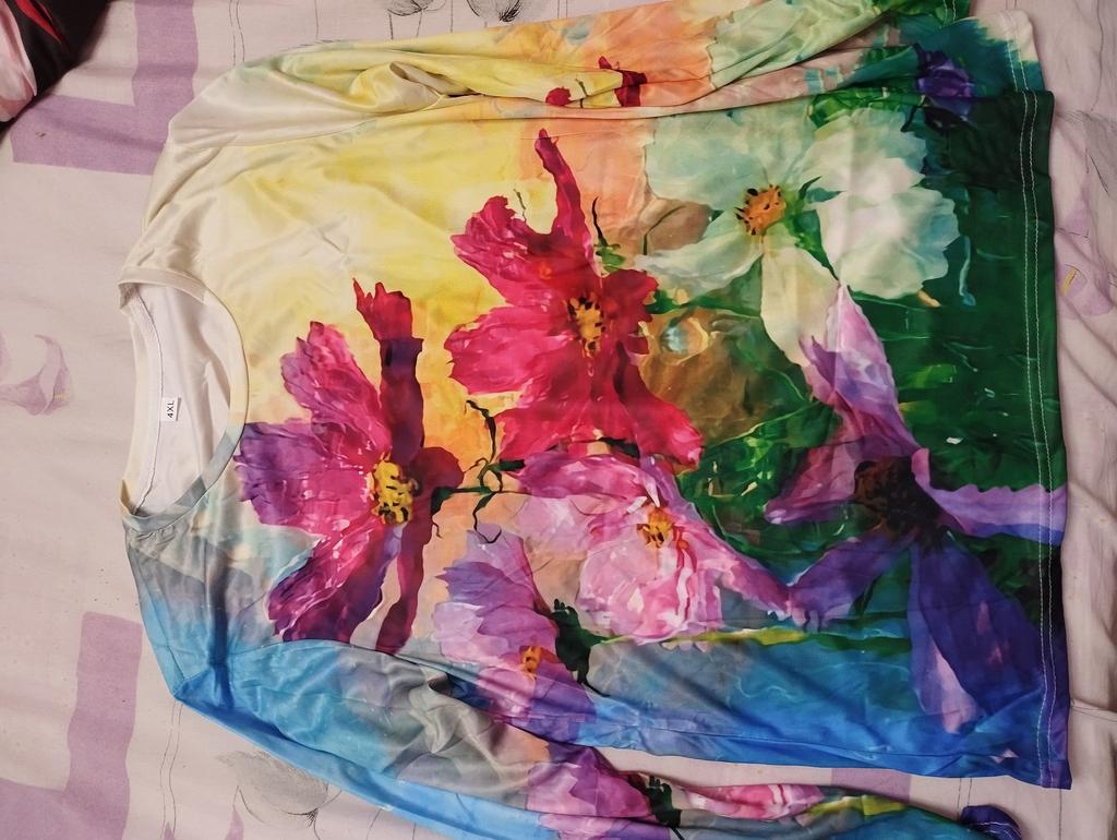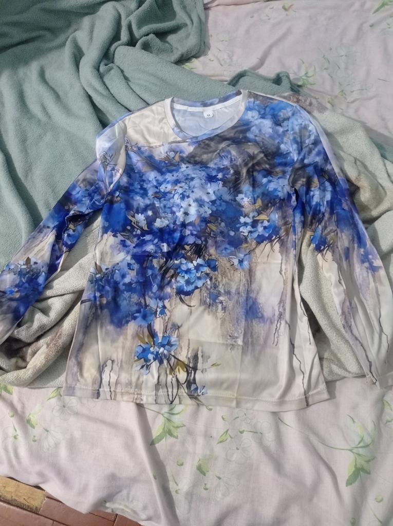 I received my order on 13.01.2024. The pattern is bright, as in the photo. The fabric is pleasant, silky to the touch. The size corresponds, the sleeve is long, but this is good. I would like the tunic itself to be longer, then it would be perfect.