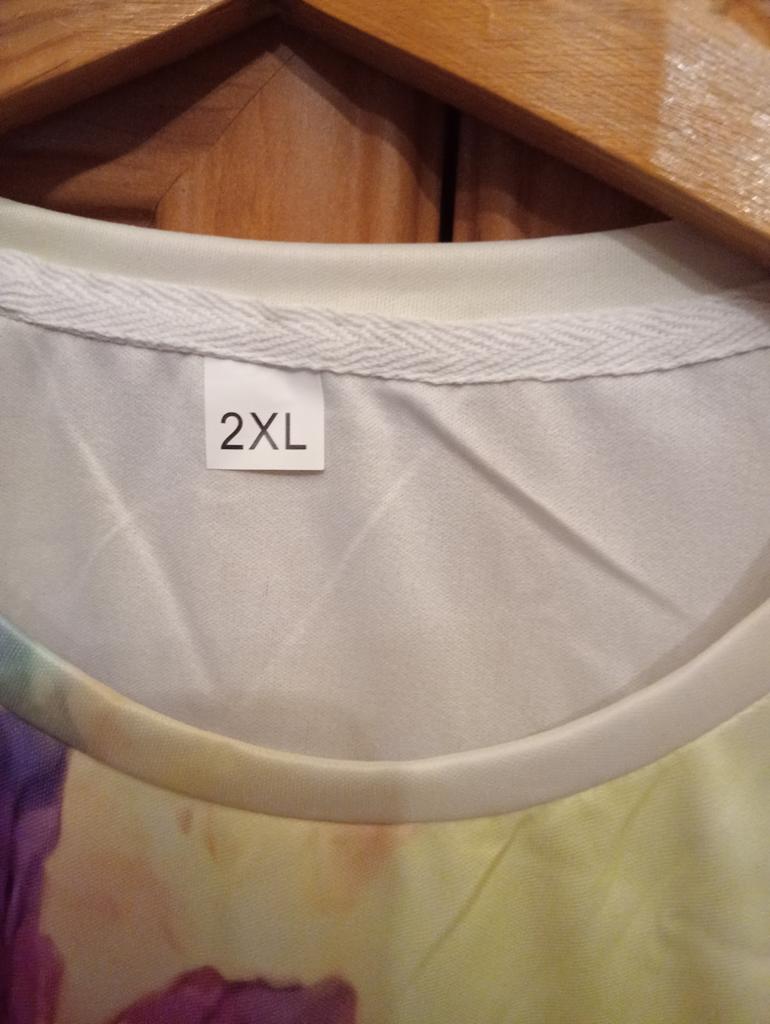 The product did not fit. It is sewn very poorly. It is fine on top, but too narrow at the bottom. The neckline is ugly. But the coloring was very tempting. Elena.