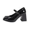 Mary Janes Vintage Black Sandals Woman Buckle Non-Slip Casual Medium Heels Office Ladies Solid Elegant Heels Summer