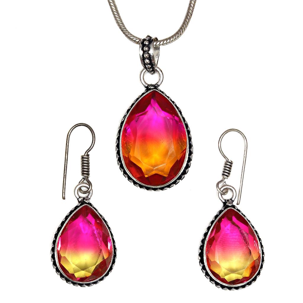 Bio-Tourmaline Quartz Jewelry Set 18-20'' Handmade For Womens Unisex New