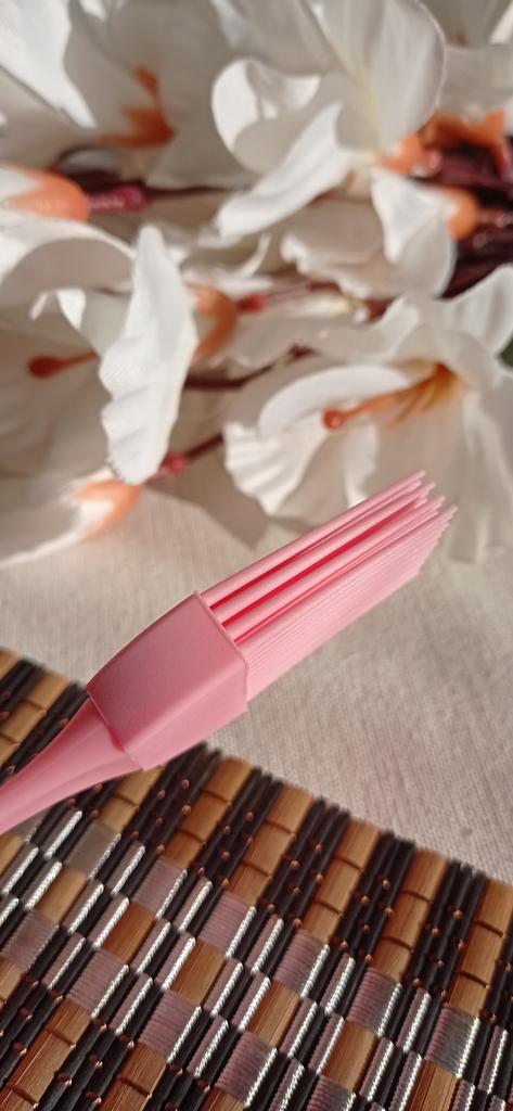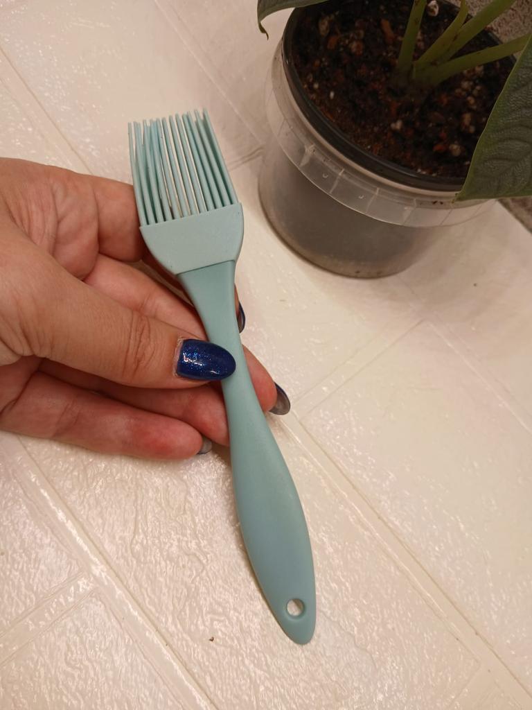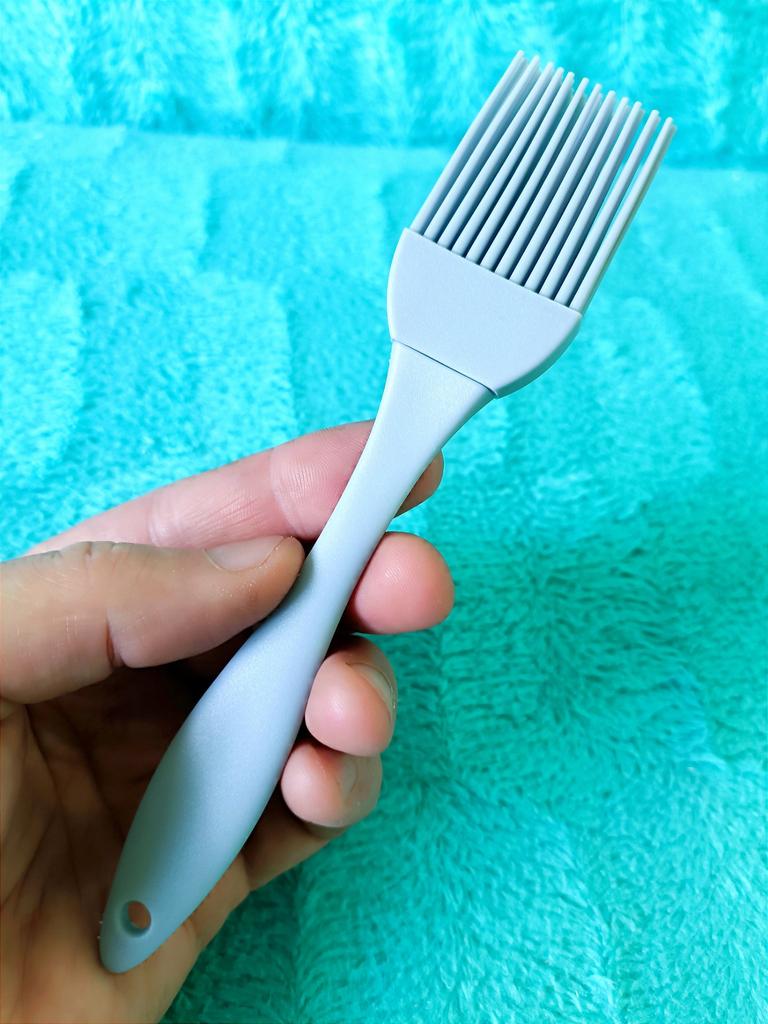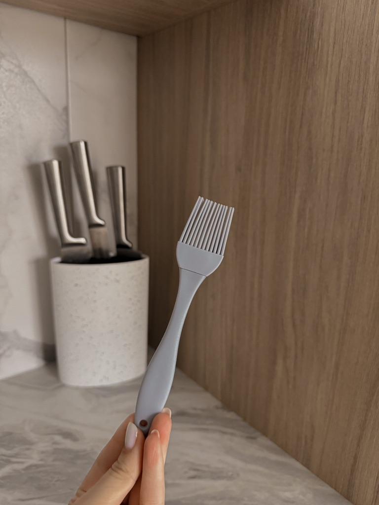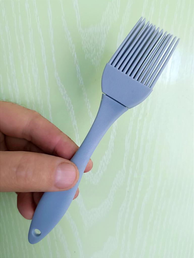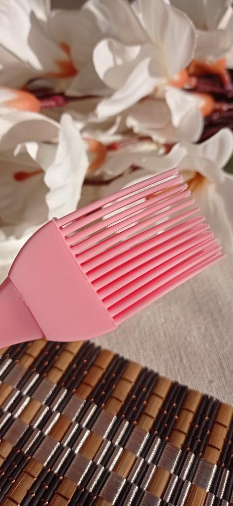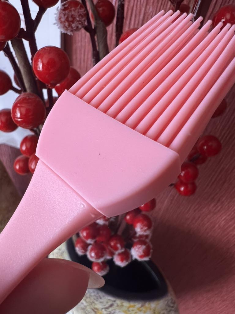 Silicone brush for oil Convenient size, easy to use and clean Can be hung on a hook Lightweight, odorless It would be desirable to have several pieces at once, it would be good if the brushes were sold as a set)