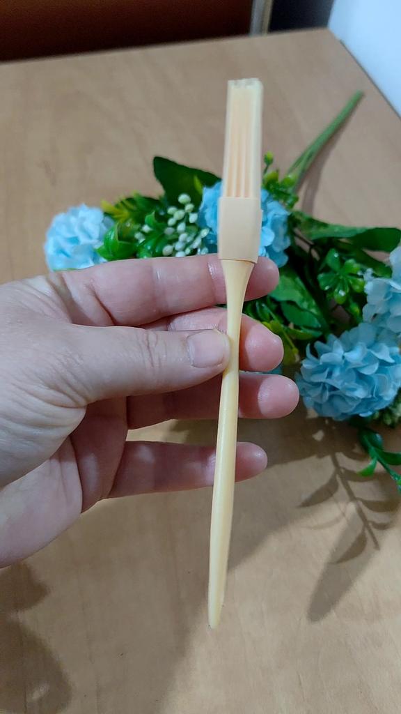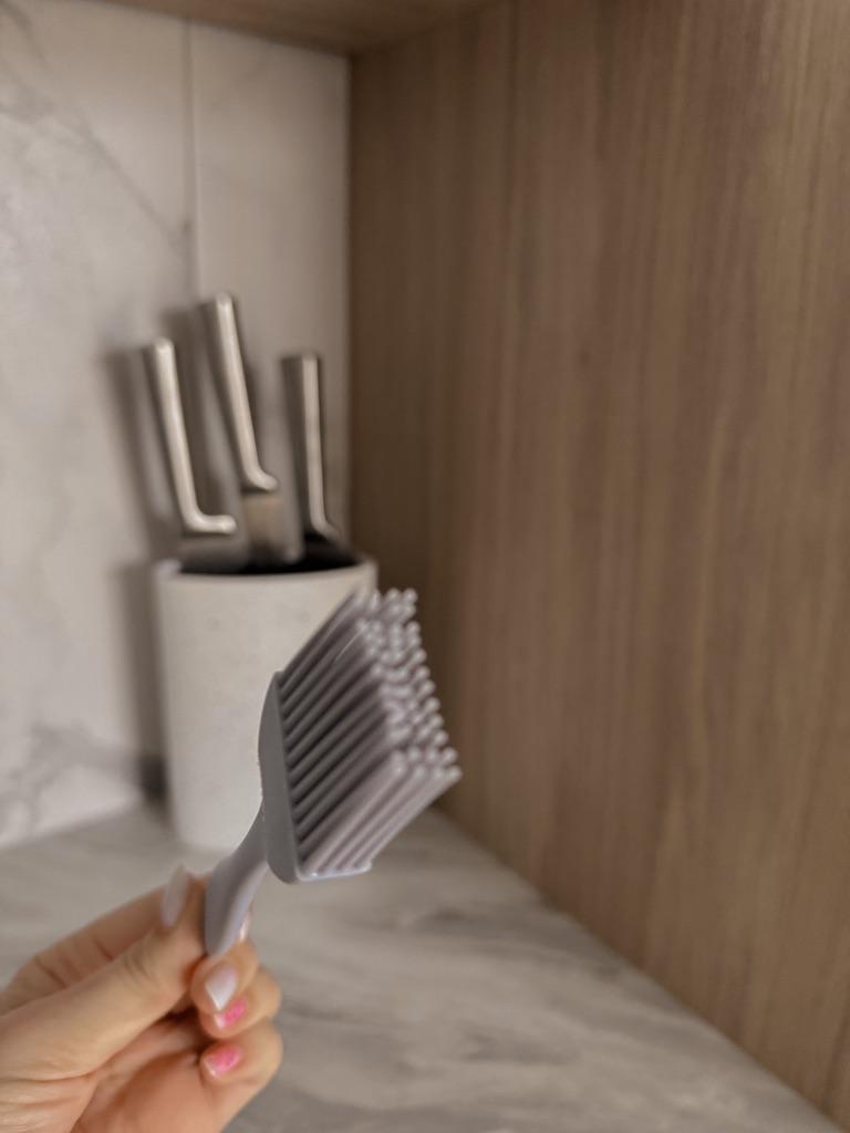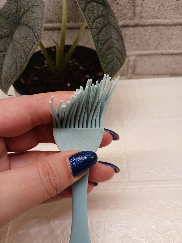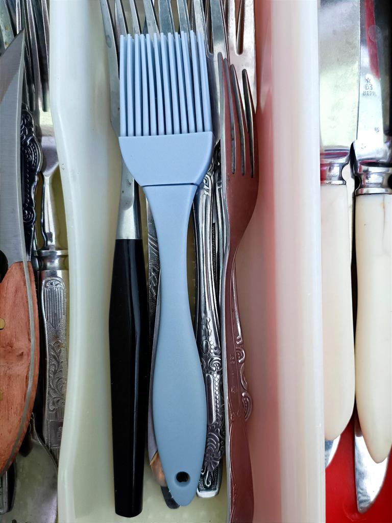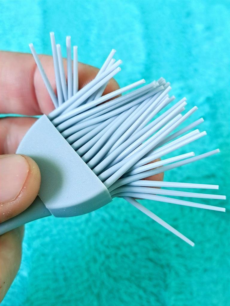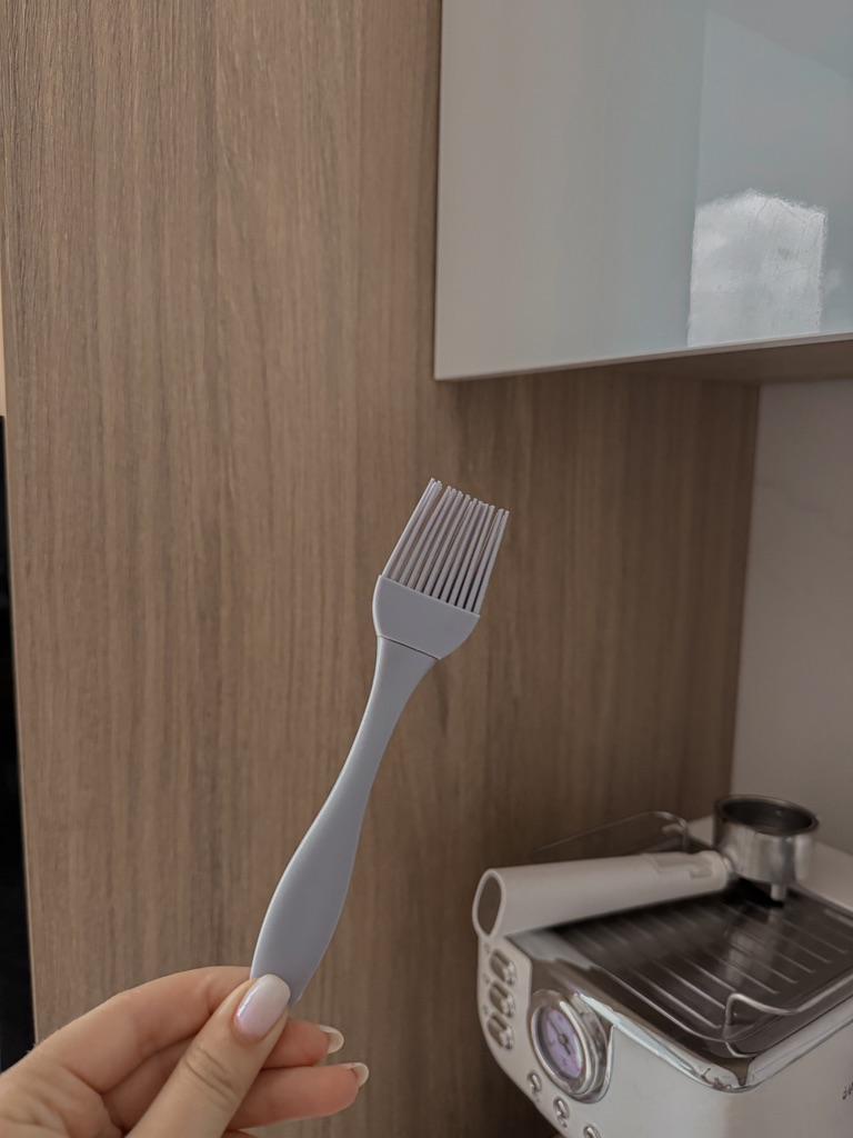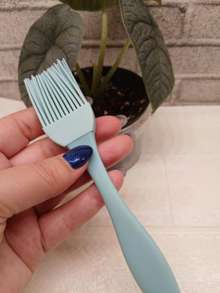 Silicone brush for oil Convenient size, easy to use and clean Can be hung on a hook Lightweight, odorless It would be desirable to have several pieces at once, it would be good if the brushes were sold as a set)