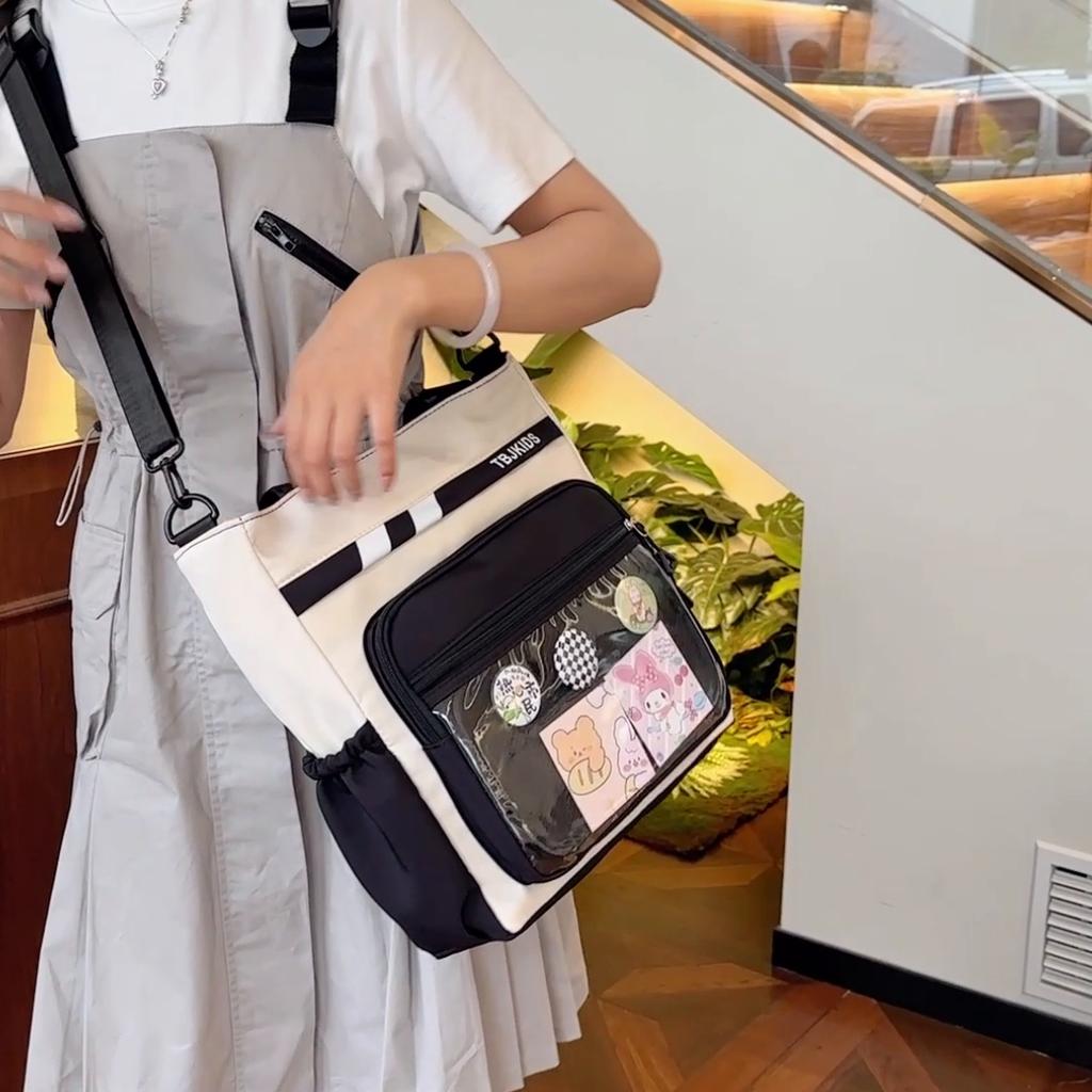 Student Messenger Bag Color Block Shoulder Bag Transparent Tote Bag