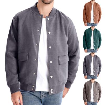 Men's American-Style Fleece Baseball Jacket - Solid Color, Loose Fit, Stand Collar, Single-Breasted for Autumn/Winter