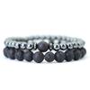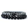 2 Pcs Natural Black Frosted Tiger Eye Stone Bracelet Men Women Gothic Vintage Beaded Brazelets Set Couple Hand Jewellery