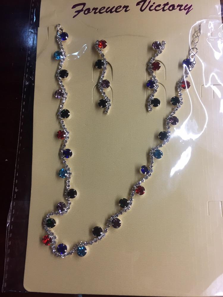 GemChic Women's New Exquisite Colorful Crystal Rhinestone Sparkling Collarbone Necklace Earrings Two Piece Set Birthday Christmas Jewelry Gift