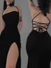 AltGoth Fairycore Sexy Midi Dress Women Streetwear Mall Gothic Backless Lace-up Halter High Waist Bodycon Dress Partywear Female