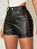 Premium Material: Made from 100% Polyester with a PU leather coating, these shorts offer slight stretch for added comfort and durability.