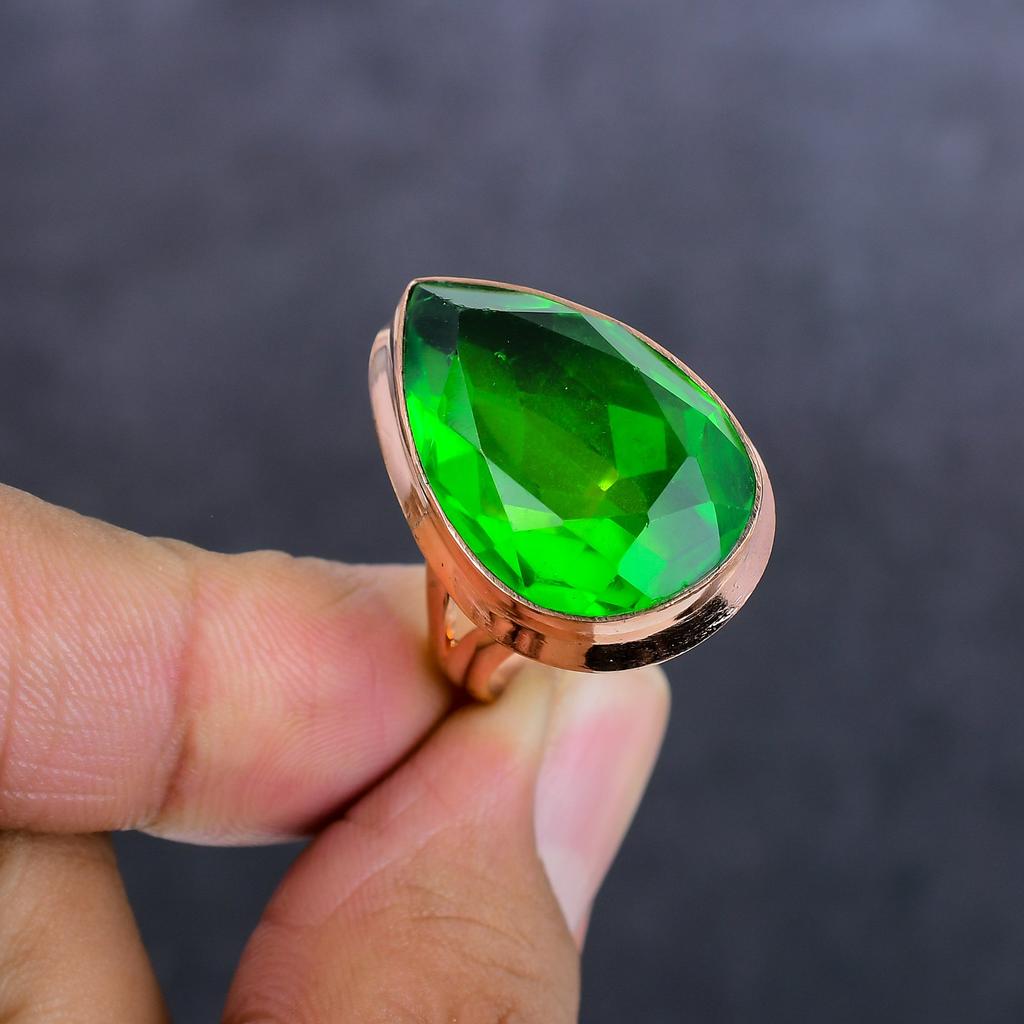 Natural Peridot Gemstone Handmade Copper Jewelry Ring Size 8 I8o30