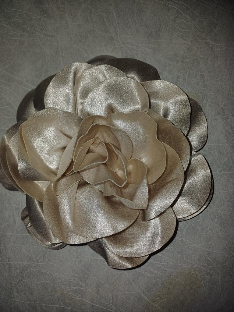 A beautiful, very elegant flower that will elevate any outfit. You should know it's large; I imagined it to be a little smaller, but it's still very pretty and looks good. The color is the same as the picture, as is the quality. It comes with a clip and a brooch.