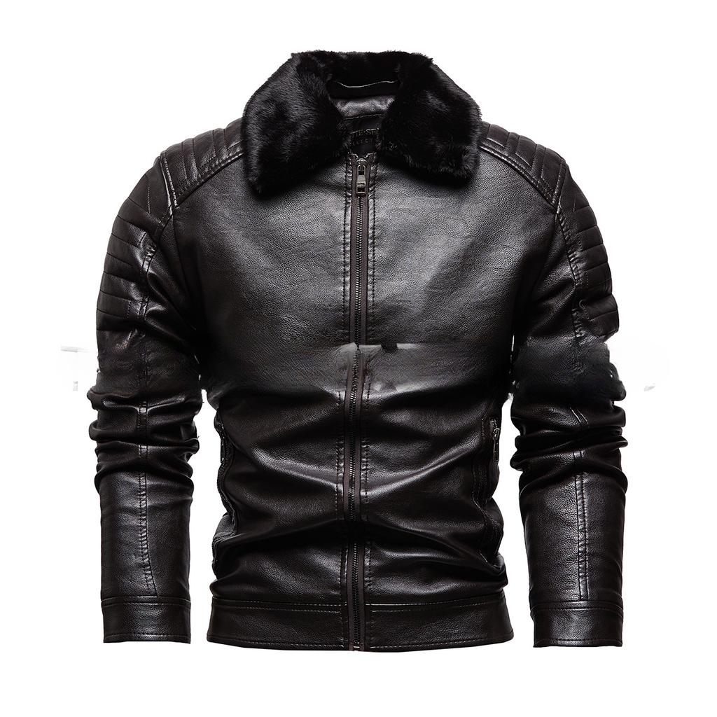 New Winter Fashion Coat Men's Fleece Thickened Fur Collar Removable Men's Leather Jacket European and American Men's Clothing
