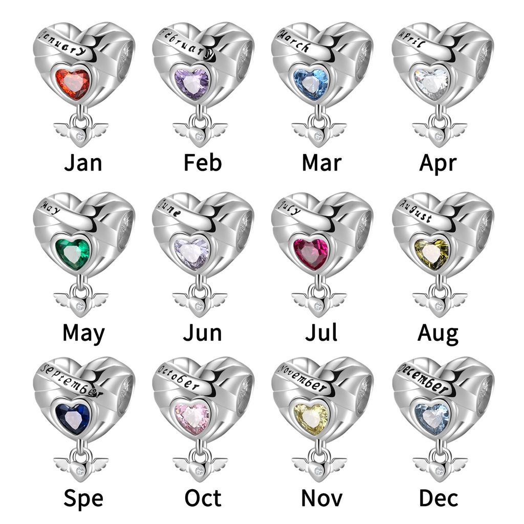 Birthstone Charms Beads January To December Cz Charms Dangle Angel Wings Fit Original Designer Bracelets Birthday Jewelry