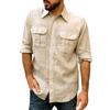 Cotton Linen Men's Classic Shirt Double Pocket Long Sleeve Casual Tops Lapel Solid Color Lightweight Shirt Trendy Male Clothing