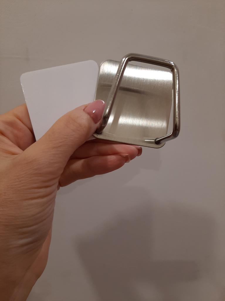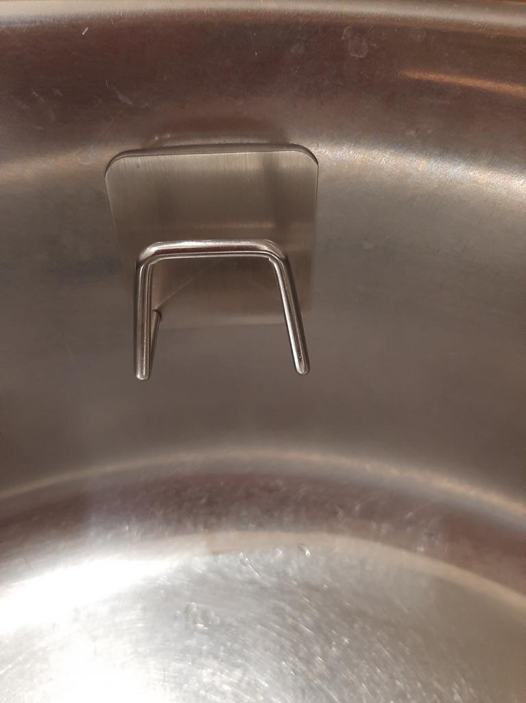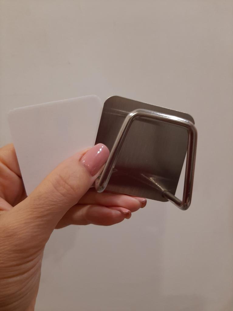 Sponge holder for sink. Holder material: stainless steel, not afraid of moisture. Dimensions: 4.9*4.9cm. The holder is easy to install, does not require drilling, but is simply attached with strong double-sided tape (included), and holds well in the sink. The self-adhesive holder can be used not only for the sink, but also for other kitchen utensils (boards, washcloths, etc.). I ordered it specifically for the sink. I've already attached it, it holds tightly, now the dishwashing sponge is always in its place.