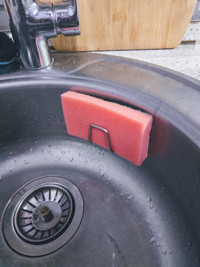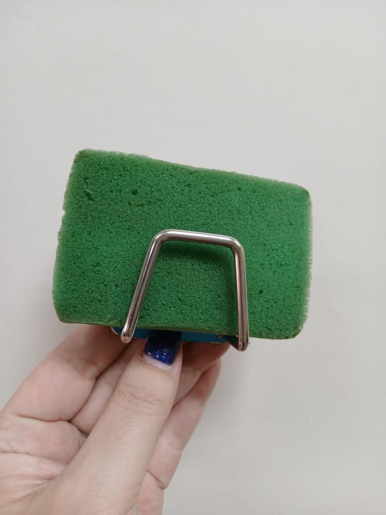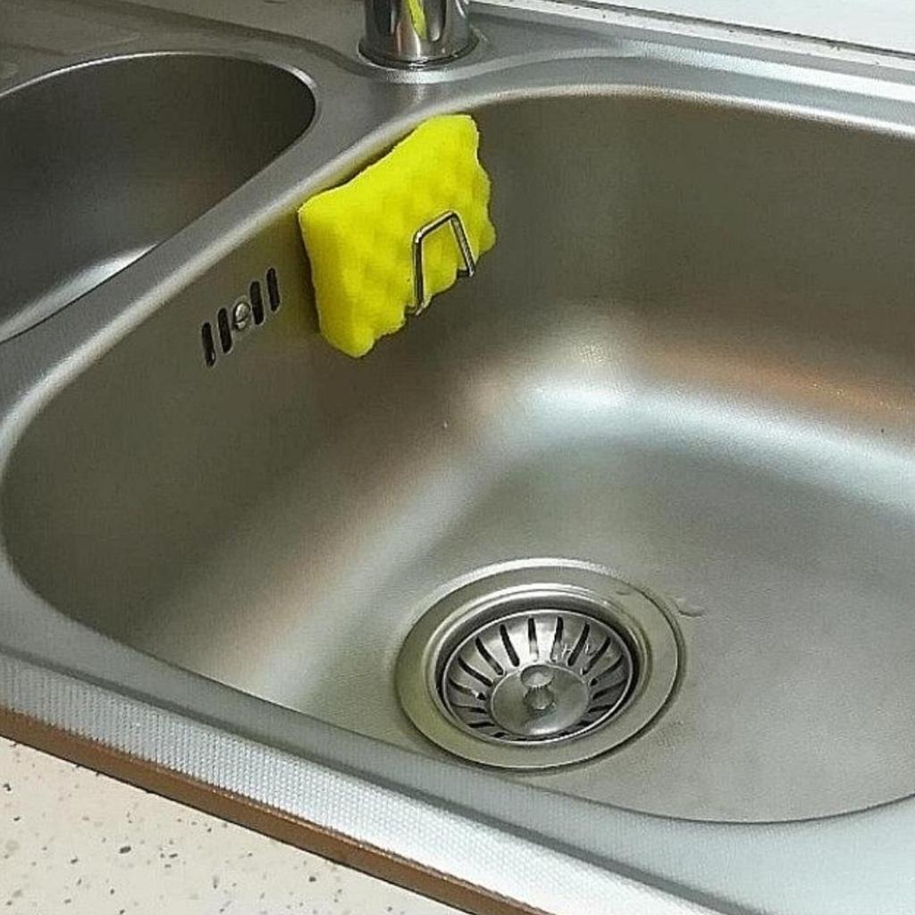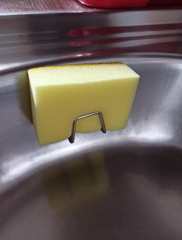 Stainless steel sponge holder. Convenient holder that can be glued to any surface. Stickers included. The price is low, the quality is good.