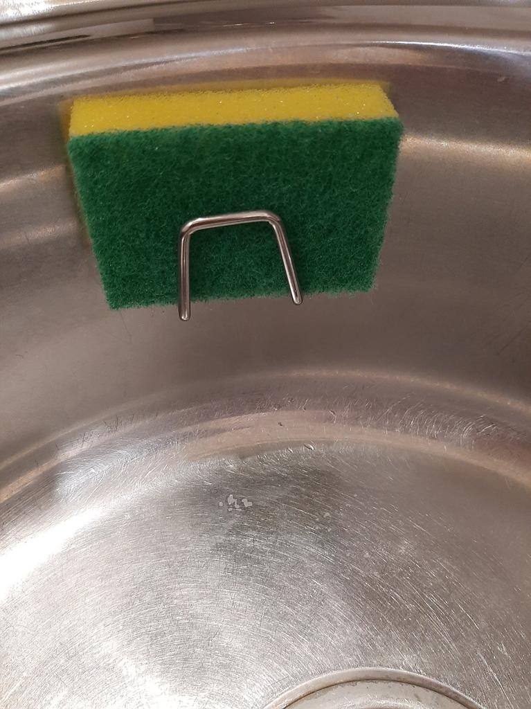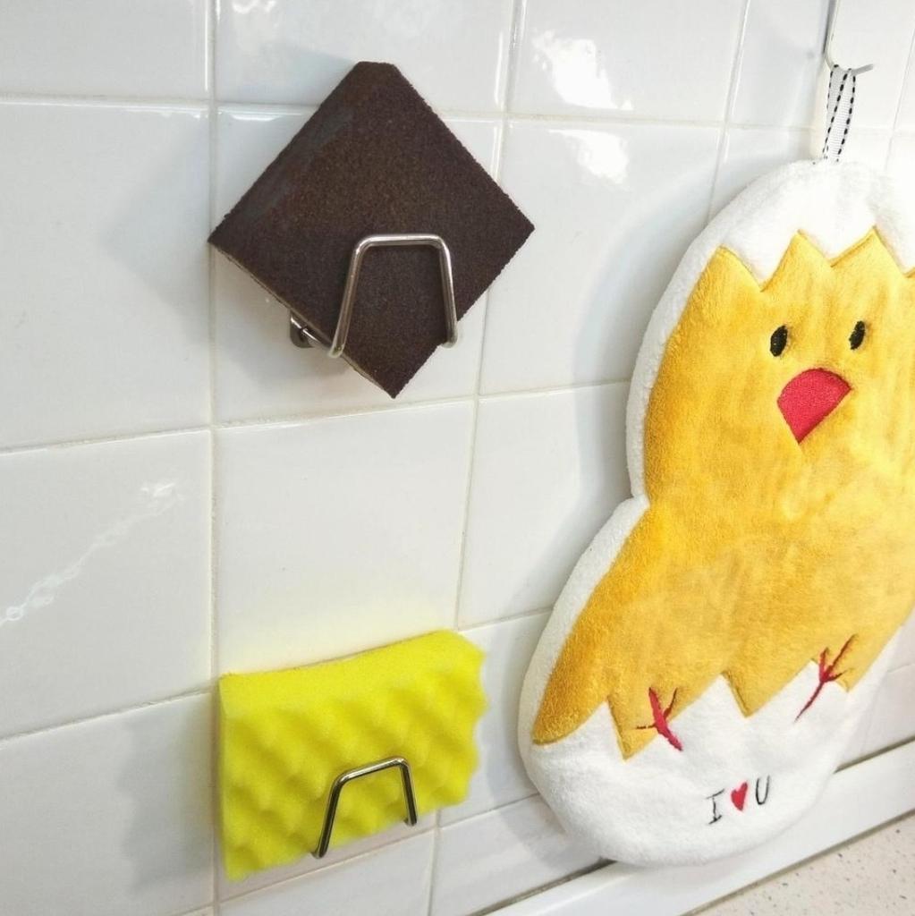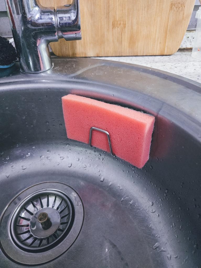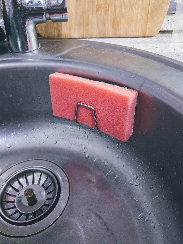 Stainless steel sponge holder. Convenient holder that can be glued to any surface. Stickers included. The price is low, the quality is good.